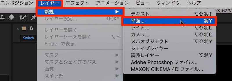上部メニューの「レイヤー」から「平面」をクリックし、背景を追加します。