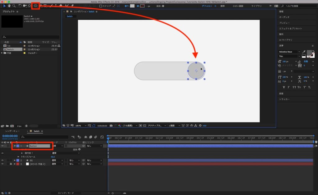 ツールバーにあるシェイプツールを使って、切り替えスイッチのデザインを作成していきます。