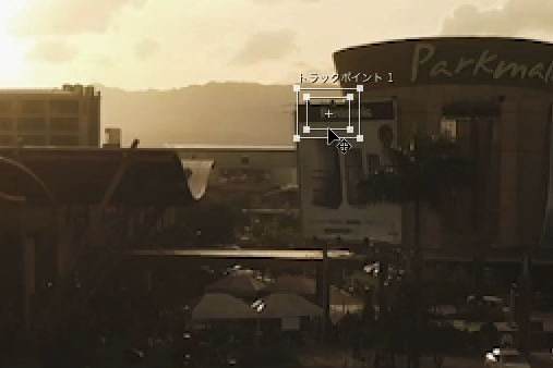平面の場合は比較的コントラストが強いエリアにトラックポイントを指定するのが良いでしょう。今回のドローンの映像の場合、看板広告の暗い部分にトラッキングポイントを指定しました。