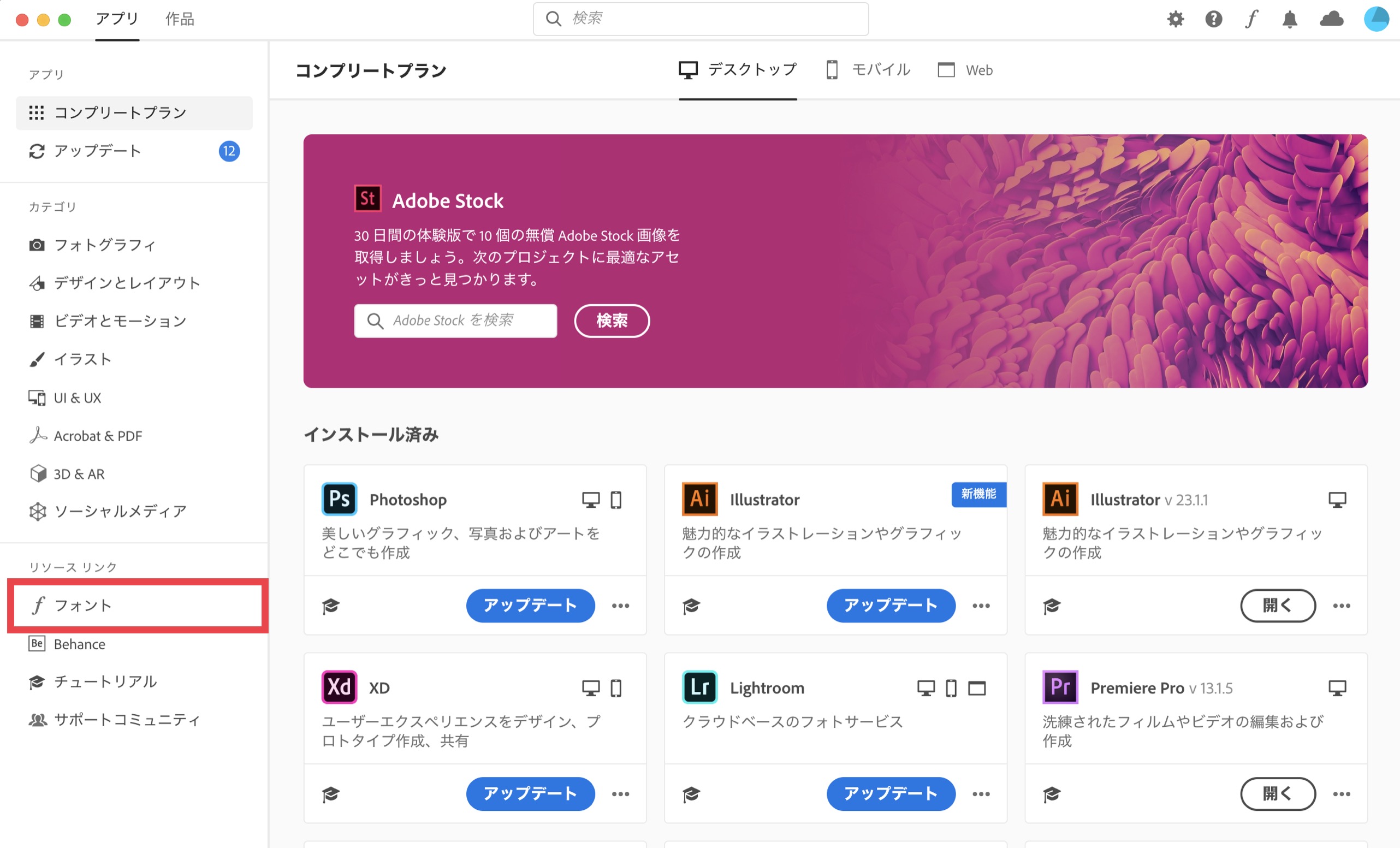 Creative Cloudアプリを使用する