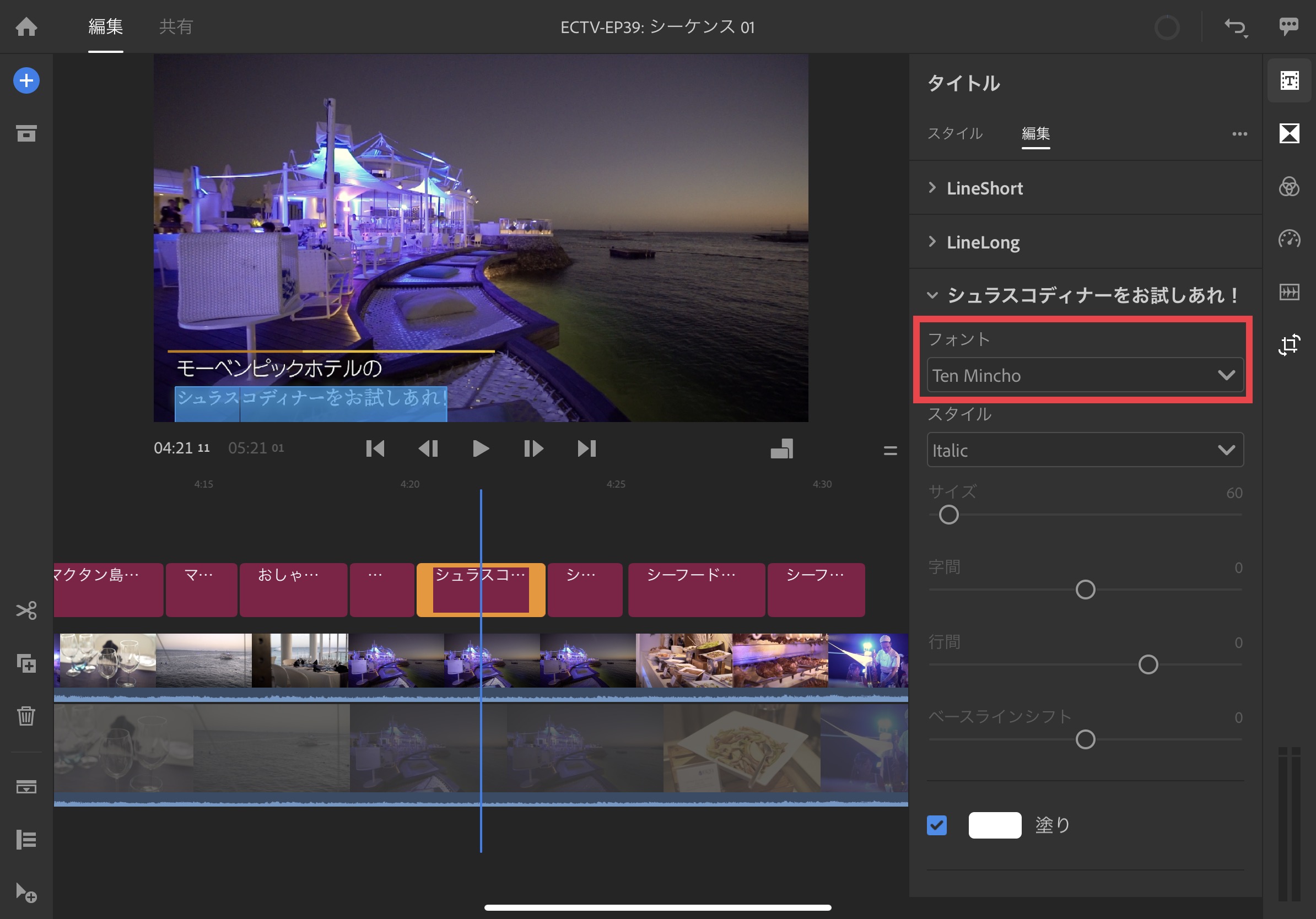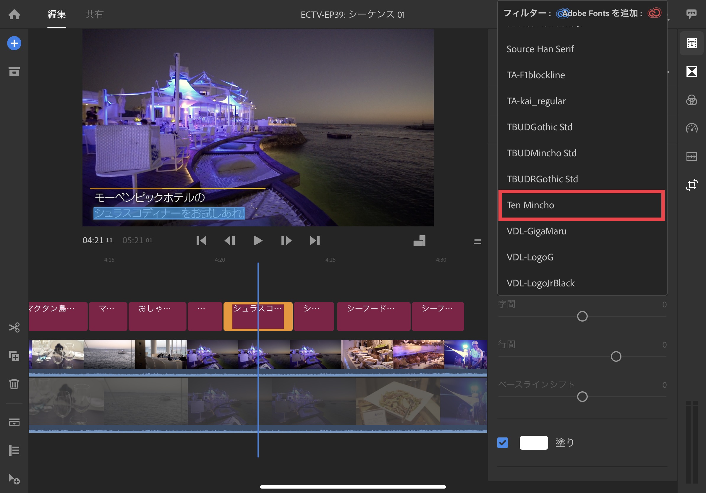 iOS版のPremiere Rushのみ英表記ですが、先ほど入手した「貂明朝」がしっかり反映されていました。