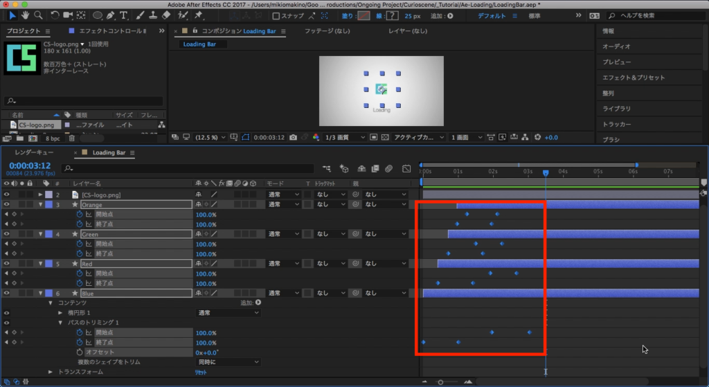 [After Effects] Googleの様なローディングバーを作ってみよう