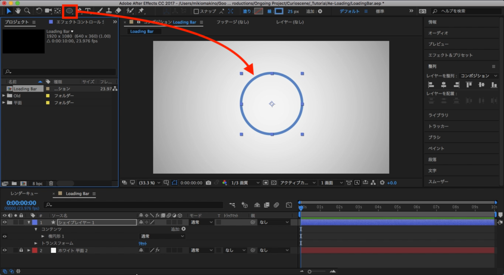 そしてツールバーから「楕円形シェイプ」のツールを使用して、円形のシェイプを追加します。