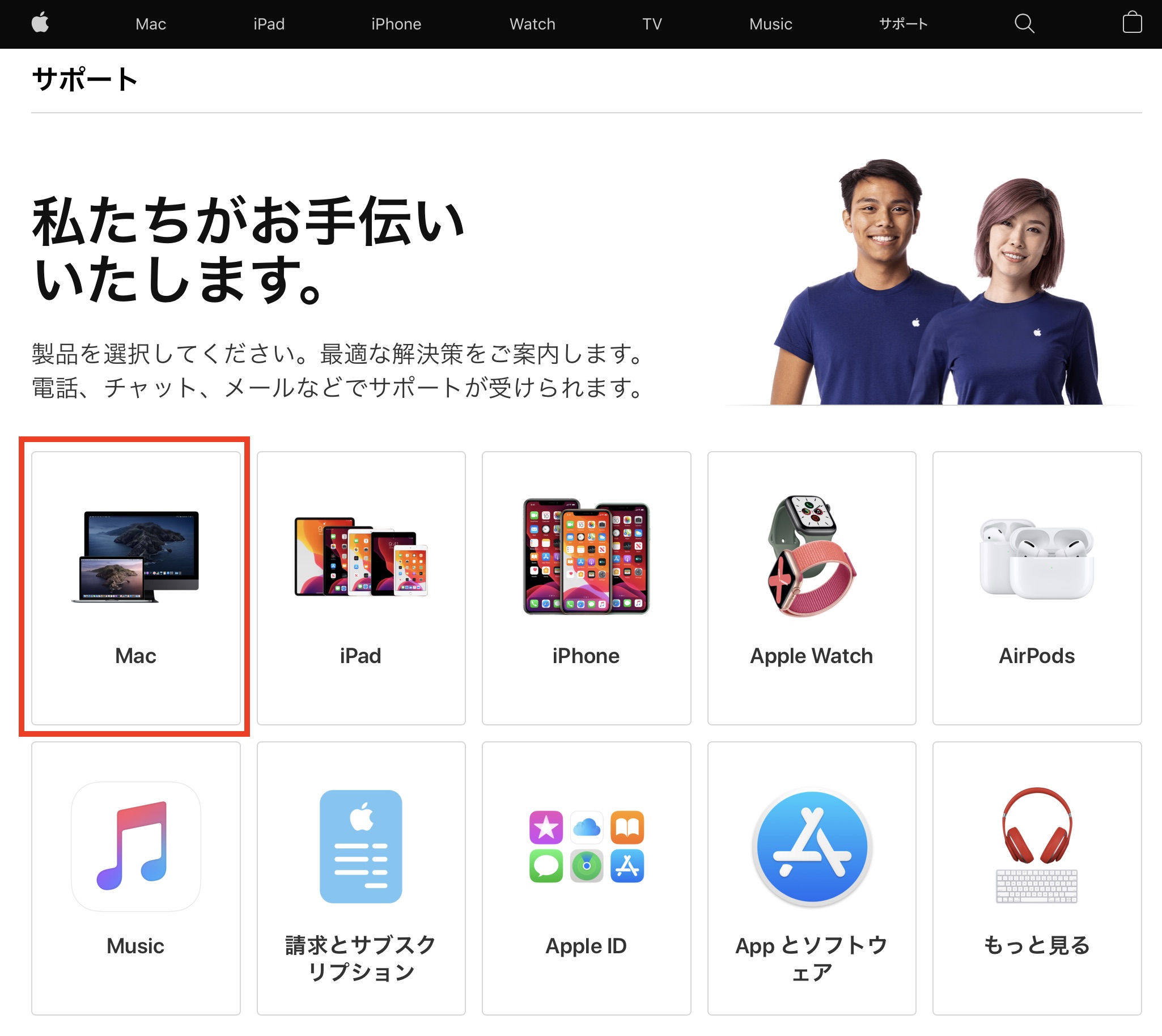 Appleサポートへ連絡する