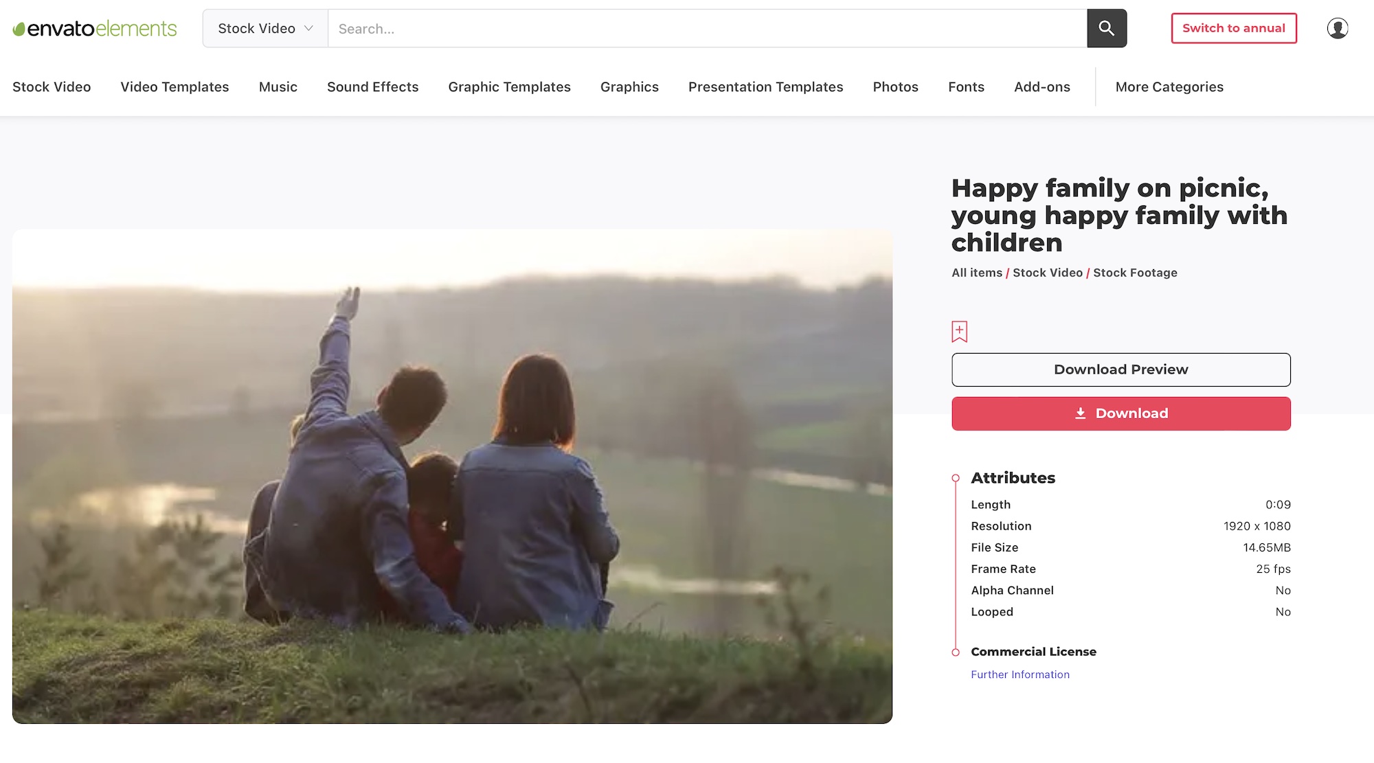 Photos、Stock Video、Musicのようにカテゴリ分けされているので、確認したいアイテムをクリックすることで詳細ページを開くことが出来ます。