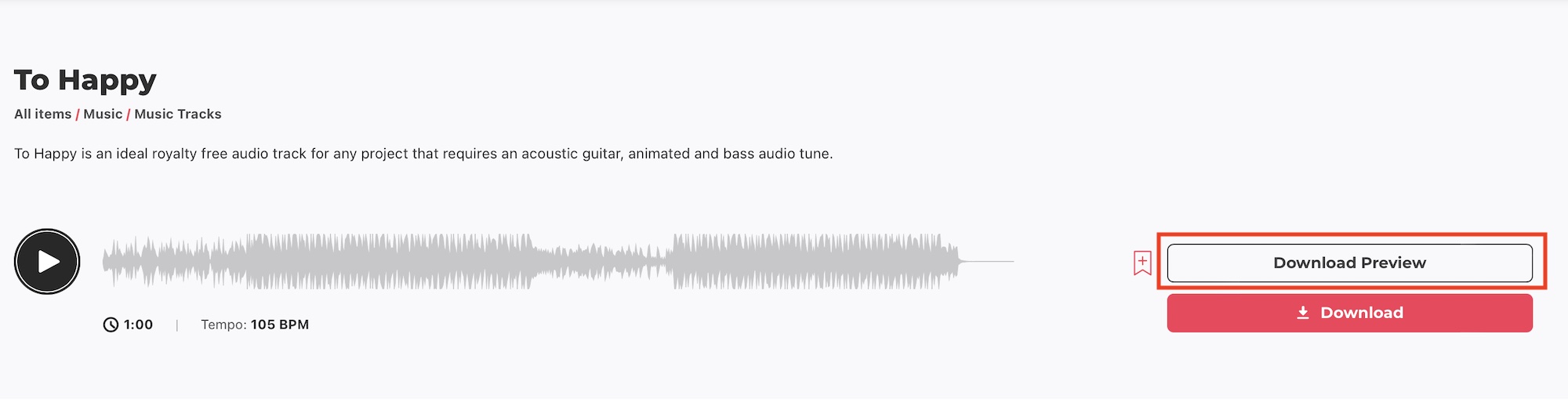 入手するアイテムによって詳細ページのデザインが多少異なりますが、アイテムのダウンロードやコレクションへの追加方法は基本的に同じになります。下は音楽のアイテムを例にしてみます。
