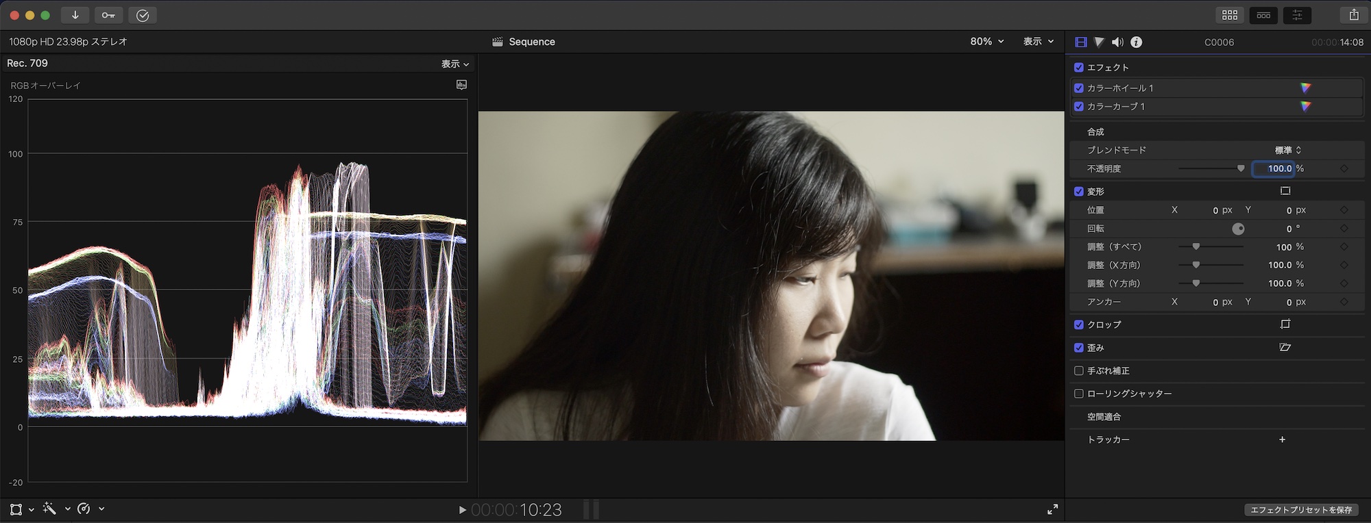 色補正は通常の映像編集に比べて細かい作業が多いので、初めて行う方には戸惑う部分もあると思いますが、今回のチュートリアルを参考にぜひFinal Cut Proでの色補正に慣れてみてください。
