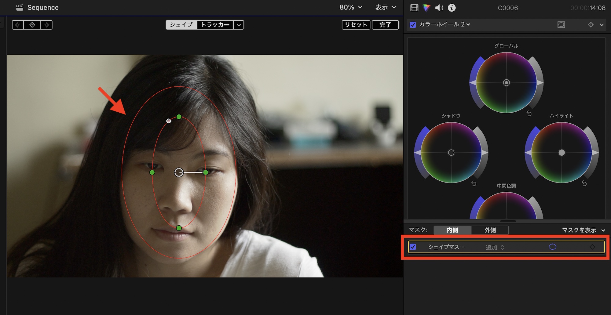 これを修正するには、人物や顔のみを補正するカラーホイールを新しく追加します。