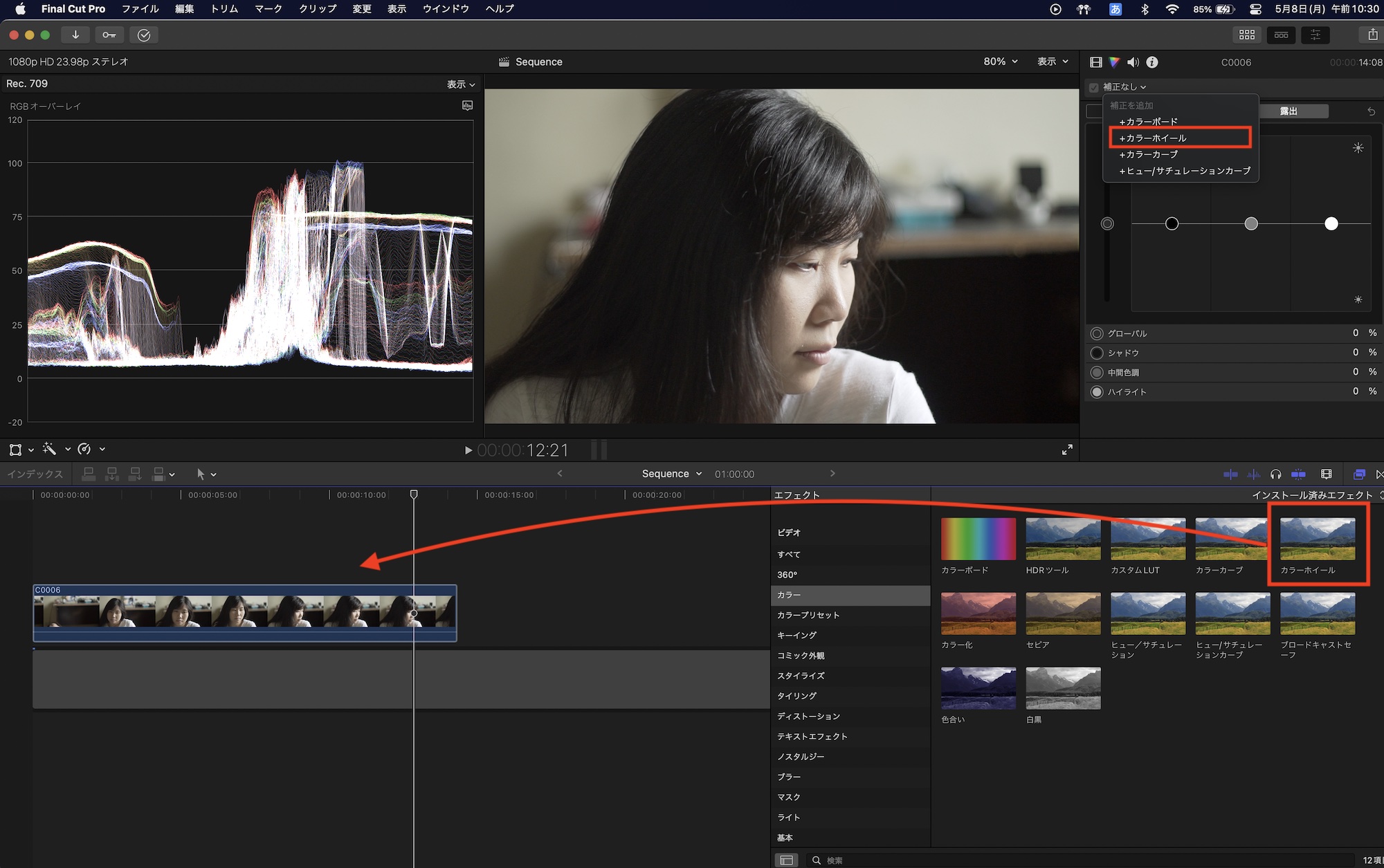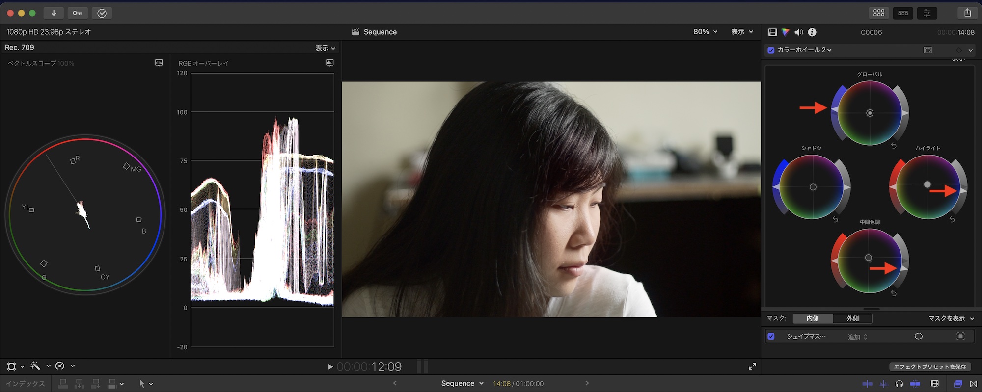 [Final Cut Pro] カラーホイールを使った基本補正の例を見てみよう