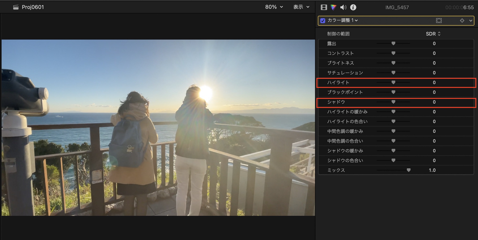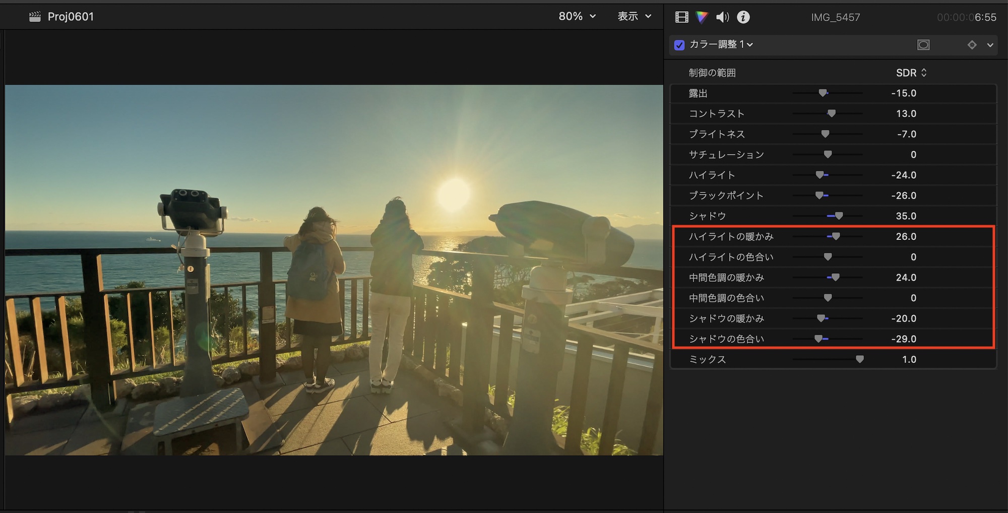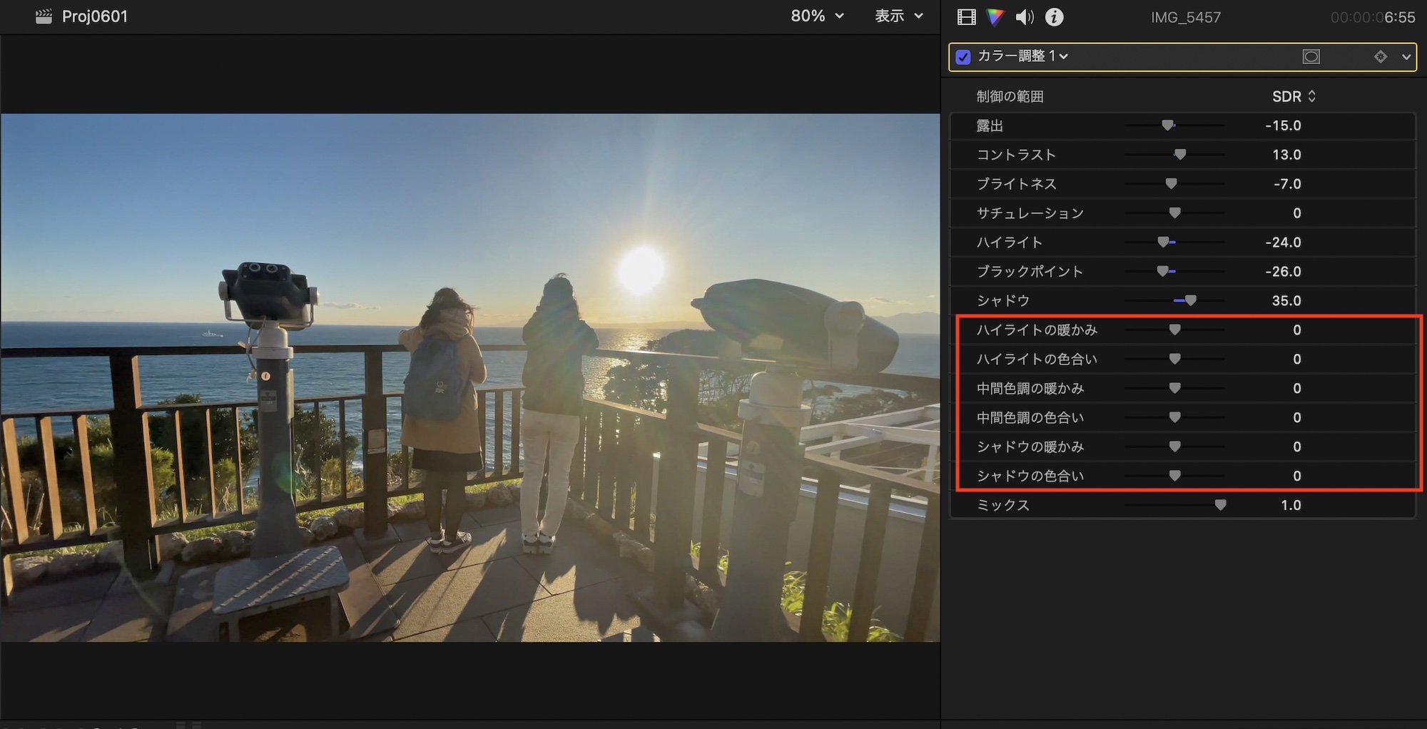 そんな方にFinal Cut Proでは新しい色補正のエフェクトである「カラー調整」がVer. 10.6.6に追加され、よりシンプルなインターフェイスで色補正が行えるようになりました。