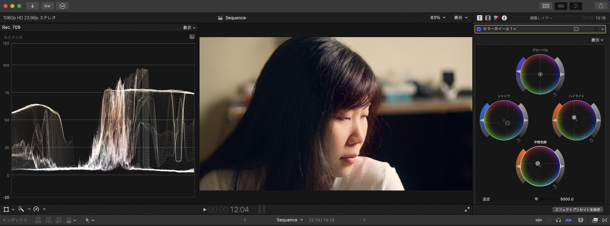 前回の記事ではFinal Cut Proのカラーエフェクトを使って明るさやコントラスト、ホワイトバランスやスキントーンを調整する基本補正(色補正)の方法を紹介しており、その記事にある手順に沿えばどのクリップでも自然な色味にすることができるのですが、シーンの雰囲気に合わせてクリップをより暖かくしたりすることで、さらに深みのある映像を作ることができます。