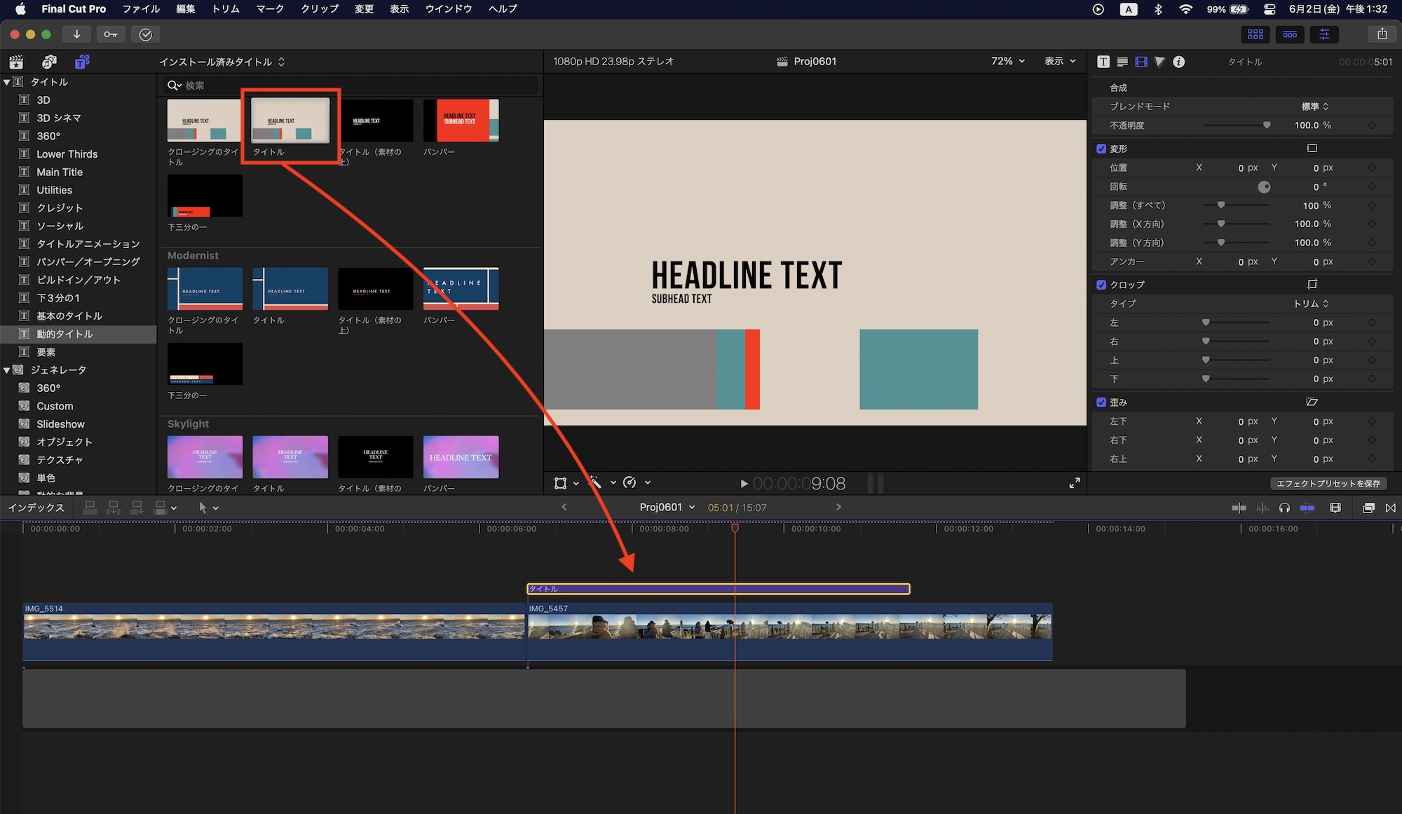 [Final Cut Pro] 動的タイトルやトランジションを使ってモーショングラフィックスのような映像を作ってみよう!