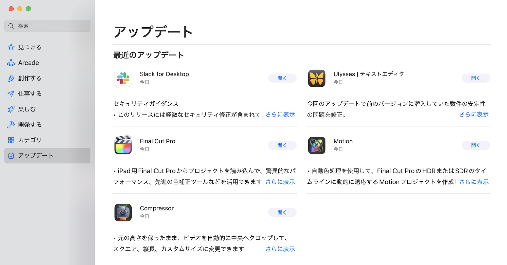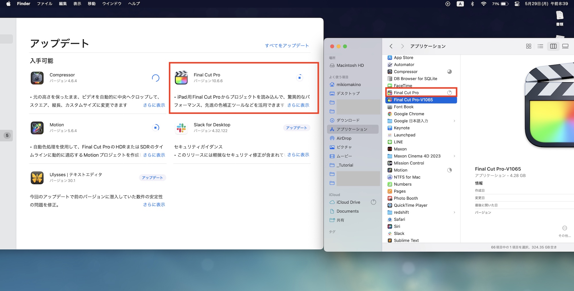 Final Cut Proのアップデートは基本的にApp Store経由で行うのですが、App Storeの「アップデート」のボタンをクリックすると、パソコンの中にあるFinal Cut Proが自動で新バージョンのものに上書きされてしまいます。