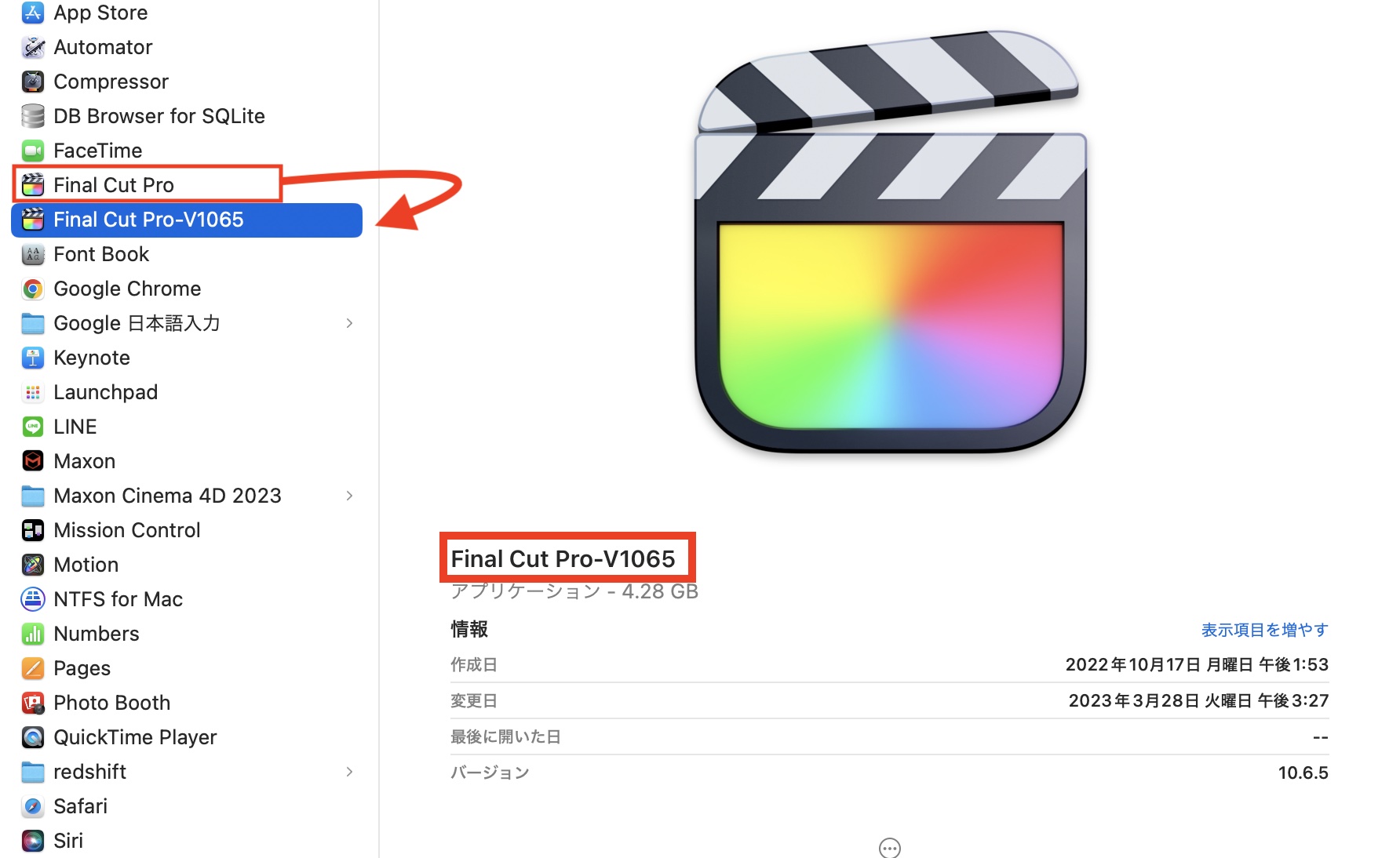 アップデート前に旧バージョンのFinal Cut Proを残す