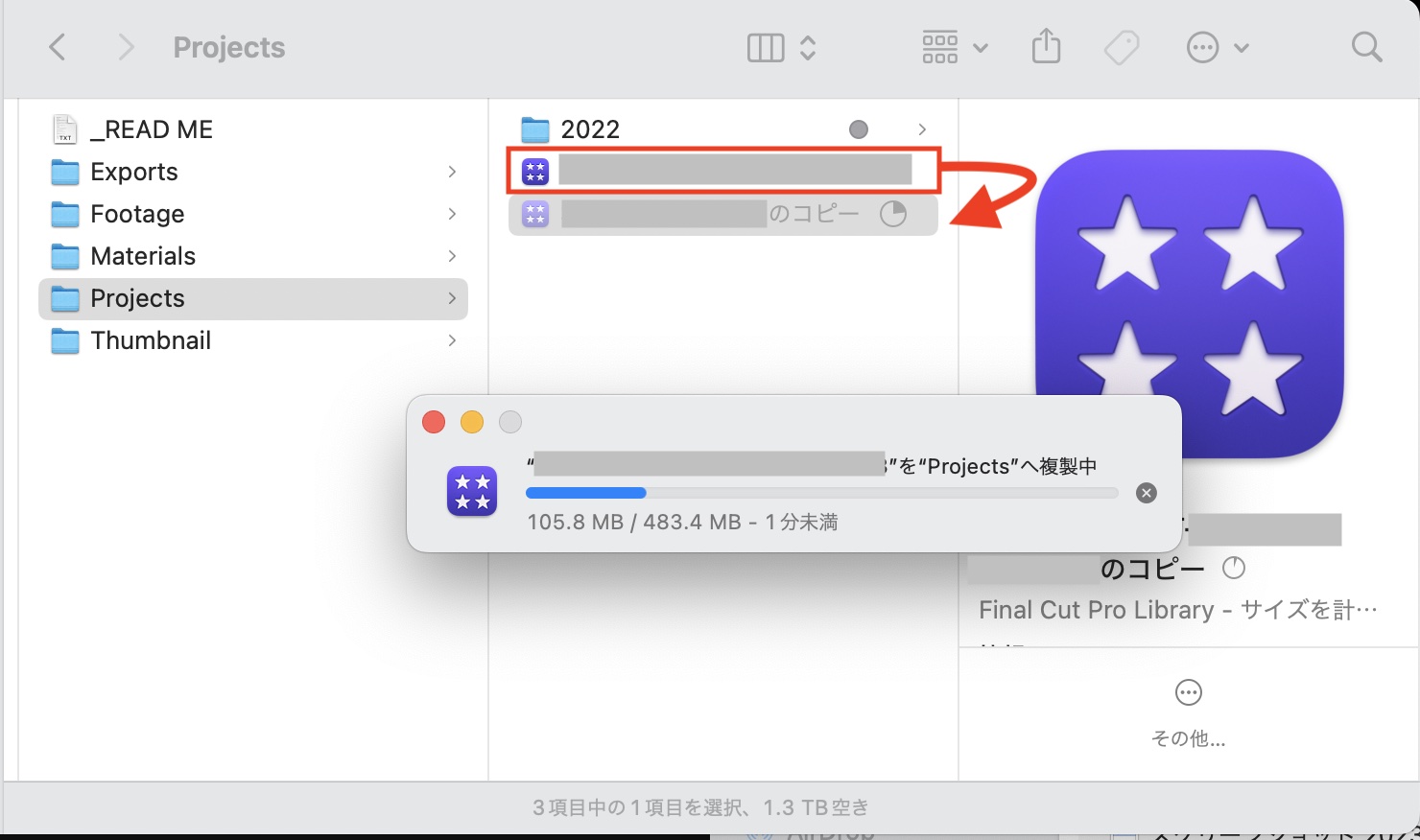 Final Cut Proの旧バージョンを残す時と同じ様に、予めFinal Cut Proライブラリを複製してバックアップすることをおすすめします。