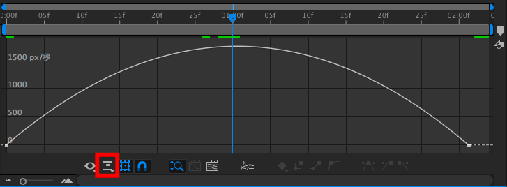 今度はタイムラインにあるグラフエディターのアイコンをクリックして、グラフエディターモードを表示させます。