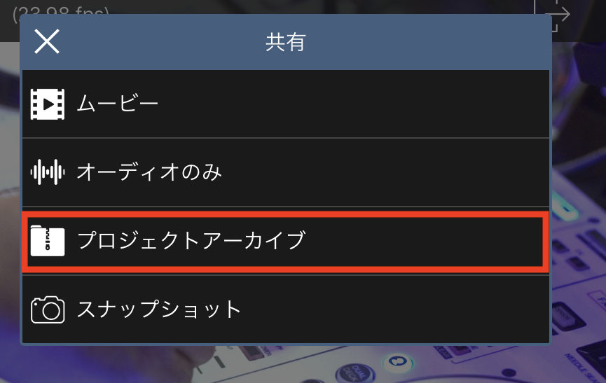共有アイコンが現れるので、タップし「プロジェクトアーカイブ」をタップしましょう。