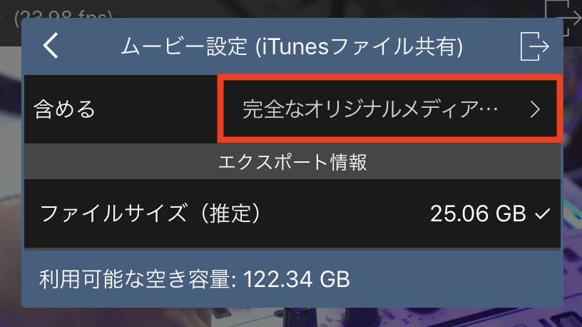 「エクスポート情報」ではアーカイブした後のおおよその容量が現れます。筆者の場合は「完全なオリジナルメディア」を選択した場合だと25GB程度、「トリミングしたメディア」を選択した場合は1.2GB程度になりました。