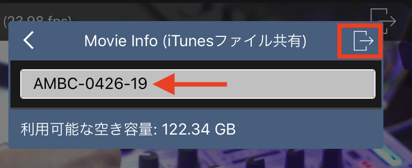 続けて上部にある共有アイコンをタップし、「Movie Info」の項目でアーカイブの名称設定を行います。
