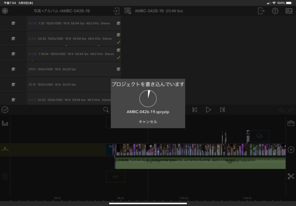 筆者の場合2分程度のプロジェクトで書き出し時間は約20分かかりました。アーカイブの処理を失敗しないように、LumaFusionのアプリは表示させておくことをオススメします。