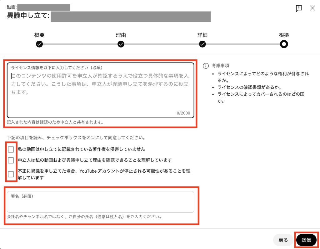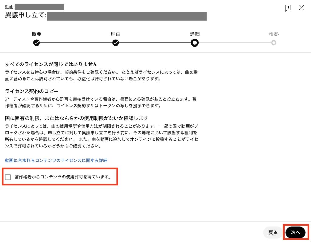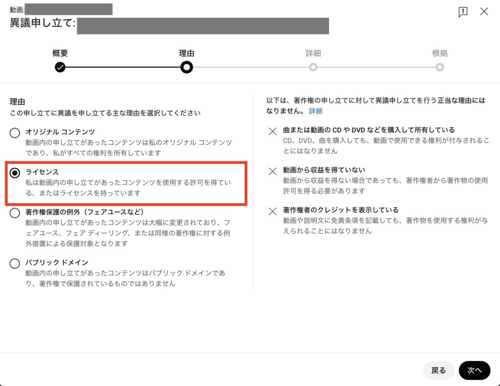 この部分はステータスによるのかもしれませんが、異議申し立てが拒否された場合はライセンスを確認してから再度行うようにしましょう。