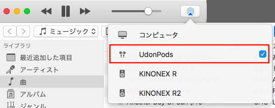 この状態であればiTunesやSpotify、YouTubeなどのメディアを再生する時は普通にワイヤレスデバイスから再生されます。