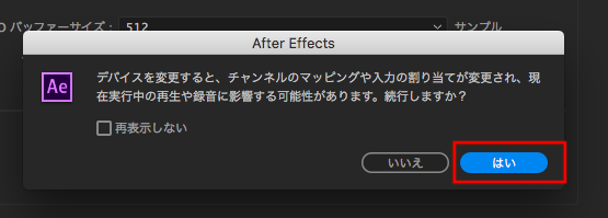 ただ注意しなくてはいけないのが、Macでのデバイスは簡単に切り替えられても、Adobe Premiere ProやAfter Effectsなどの編集アプリで使用する際は、アプリ内の設定を変更する必要があるということ。