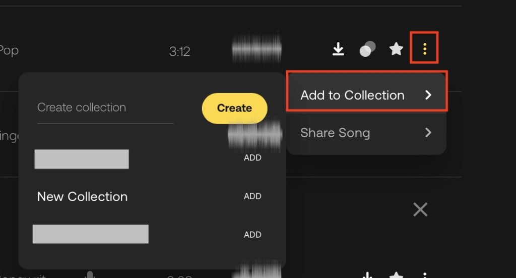 リストの一番右にある3つの縦線アイコンをクリックし「Add to Collection」を選択します。