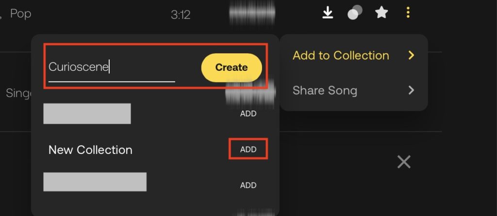 メニューが現れるので「Create collection」からコレクション名を入力して「Create」のボタンをクリックして新しくコレクションを作成したり、「ADD」をクリックして既存のコレクションに追加できます。