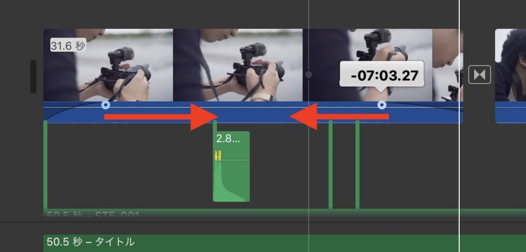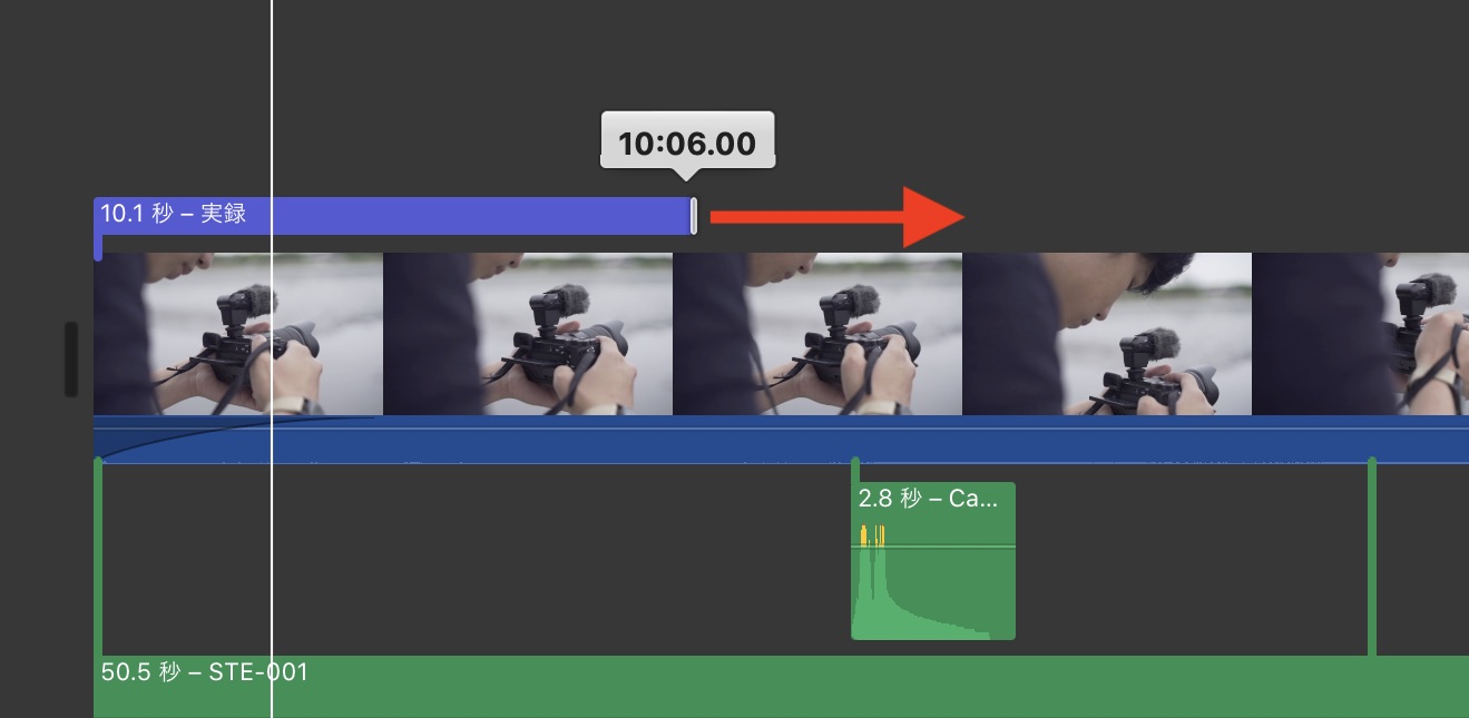 クリップ全体がタイムライン上部に現れるので、反映させたい位置までスライドして変更すると良いでしょう。