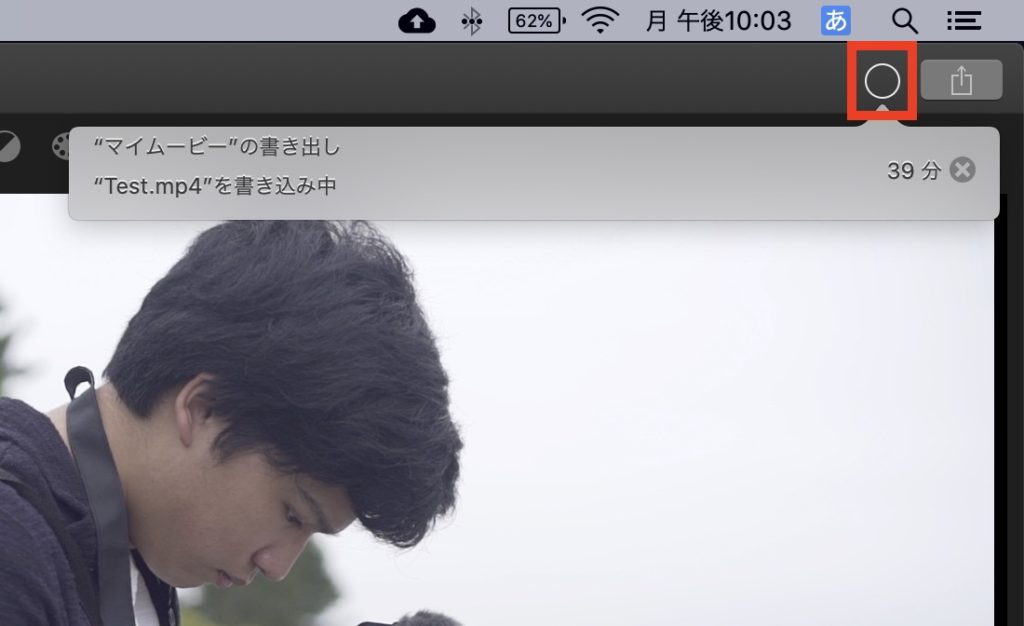 書き出し中は右上のステータスから進行状況を確認することが出来ます。
