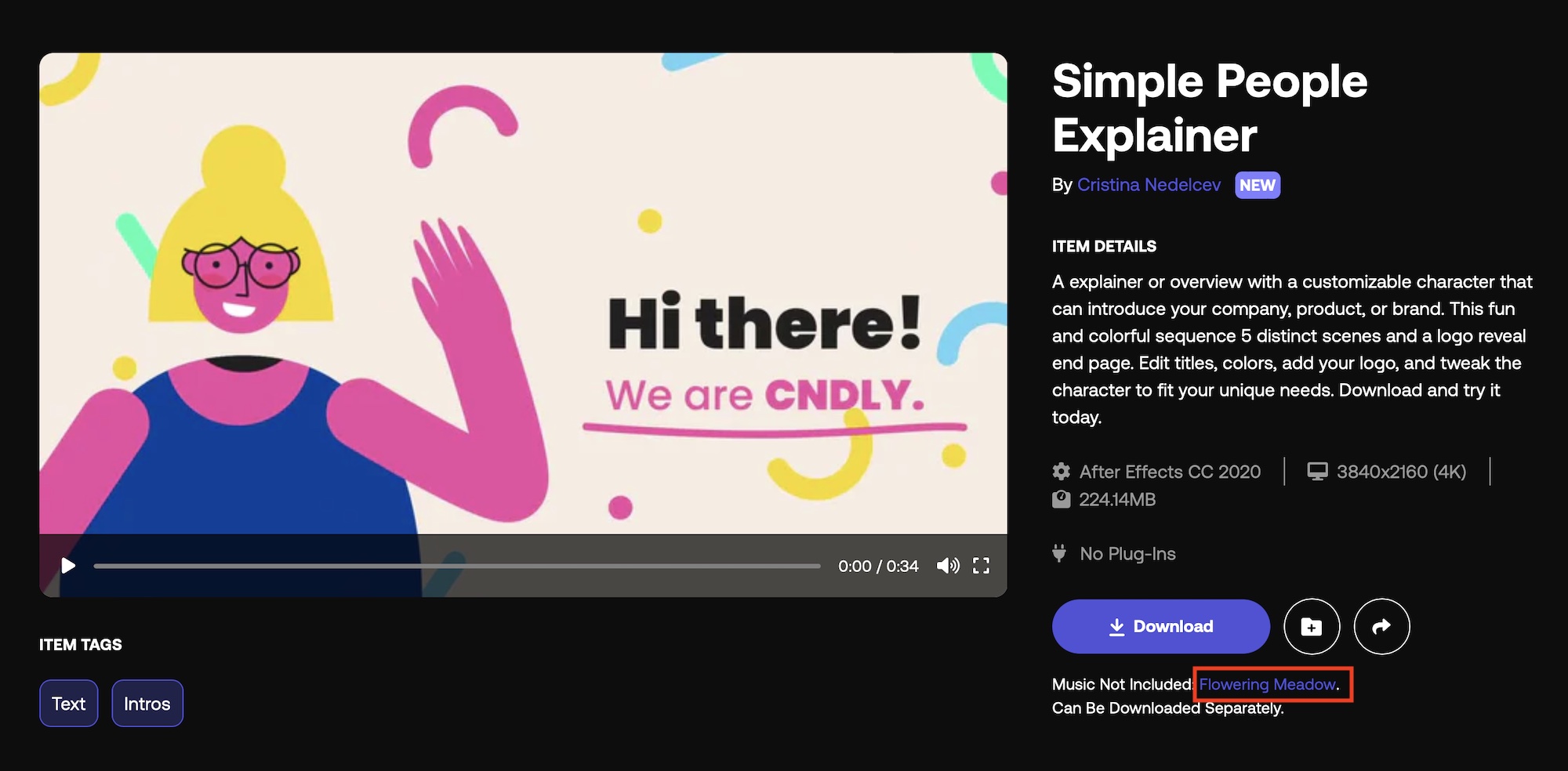 テンプレートは基本的にBGMは含まれていないので、プレビューと同じ音源を使いたい場合は「Music Not Included」の横にあるリンクをクリックすると良いでしょう。