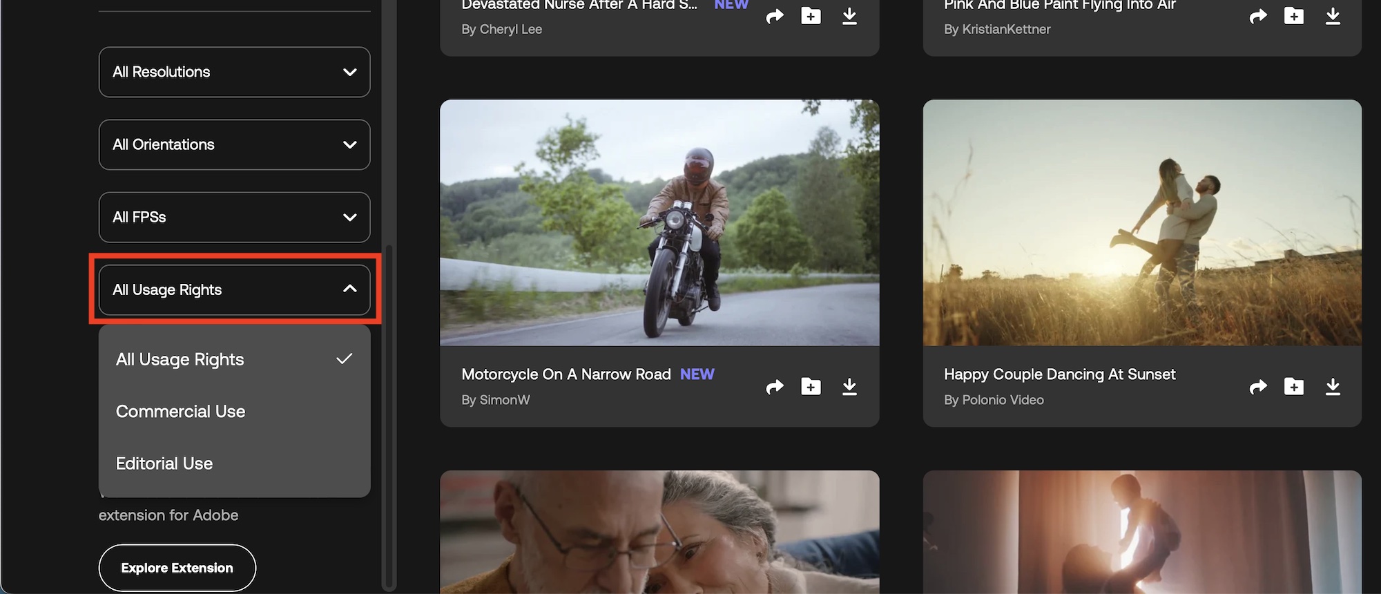 Commercial Useの場合はその名の通り商用利用が可能の素材となっており、Commercial Useに紐付けされたアセットは登場するロケーションや被写体の肖像権などといった権利がカバーされているものです。