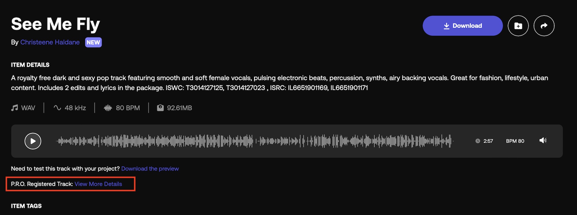 「All Usage Rights (全ての使用許諾)」にある「P.R.O.」とは著作権管理団体の事を指し、ロイヤリティーフリーでありながらアメリカであればASCAP、日本であればJASRACといった団体に登録されている音楽のことを指します。