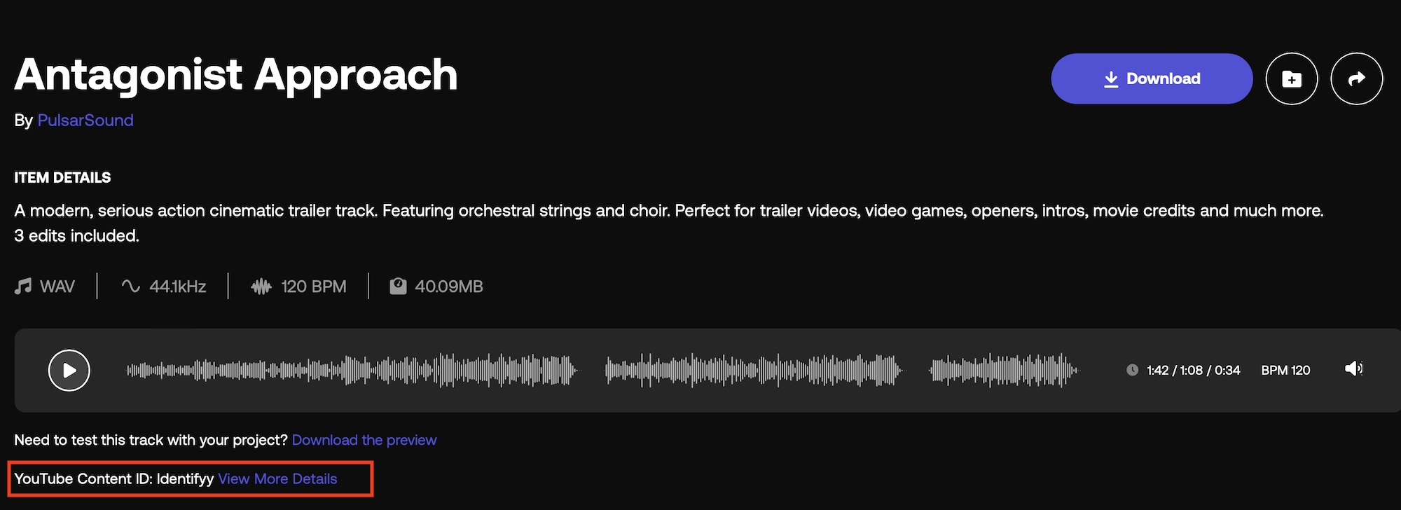 「This track is free for royalty free use on Motion Array, and I have a free account」