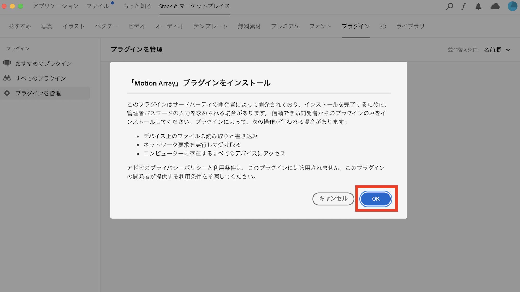 Creative Cloudアプリが起動するので指示に従ってエクステンションをインストールします。