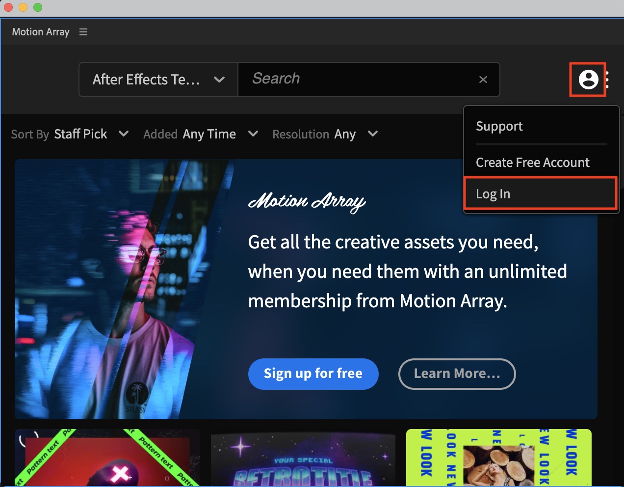 Premiere ProやAfter Effectsをメインで使っている場合はMotion ArrayによるAdobeのエクステンションを追加するとウェブサイトにアクセスせずにテンプレートを入手できるのでおすすめです。