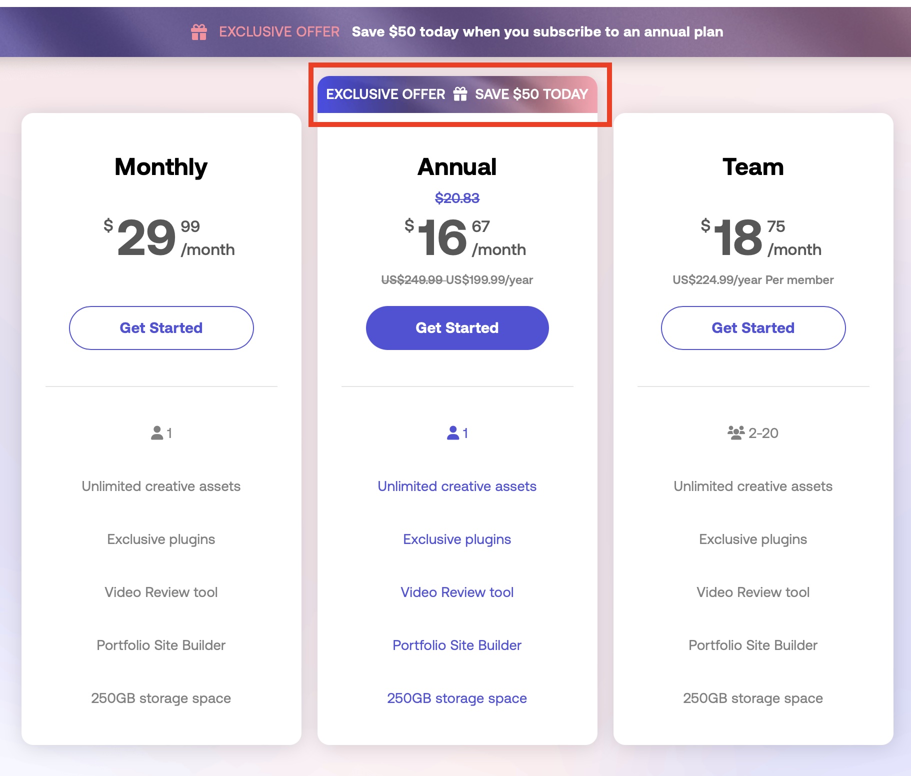 ※上のリンクから登録することでAnnualプランに50ドルの割引が適用されます