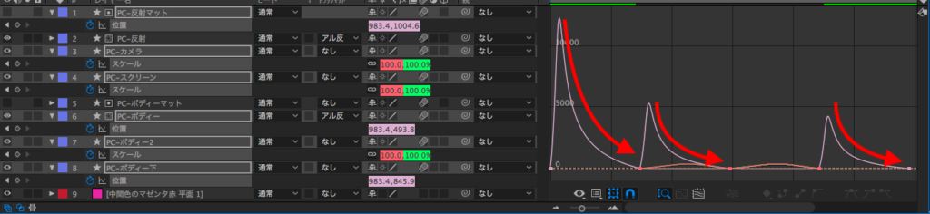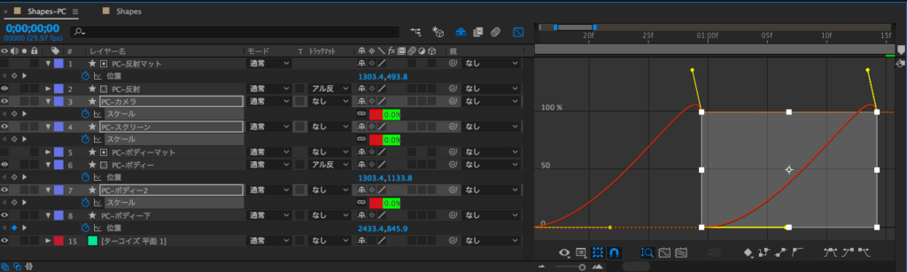必要であればスマートフォンのアニメーションのようにスケールプロパティで使用したオブジェクトには「値グラフ」の調整をしてみるのも良いと思います。