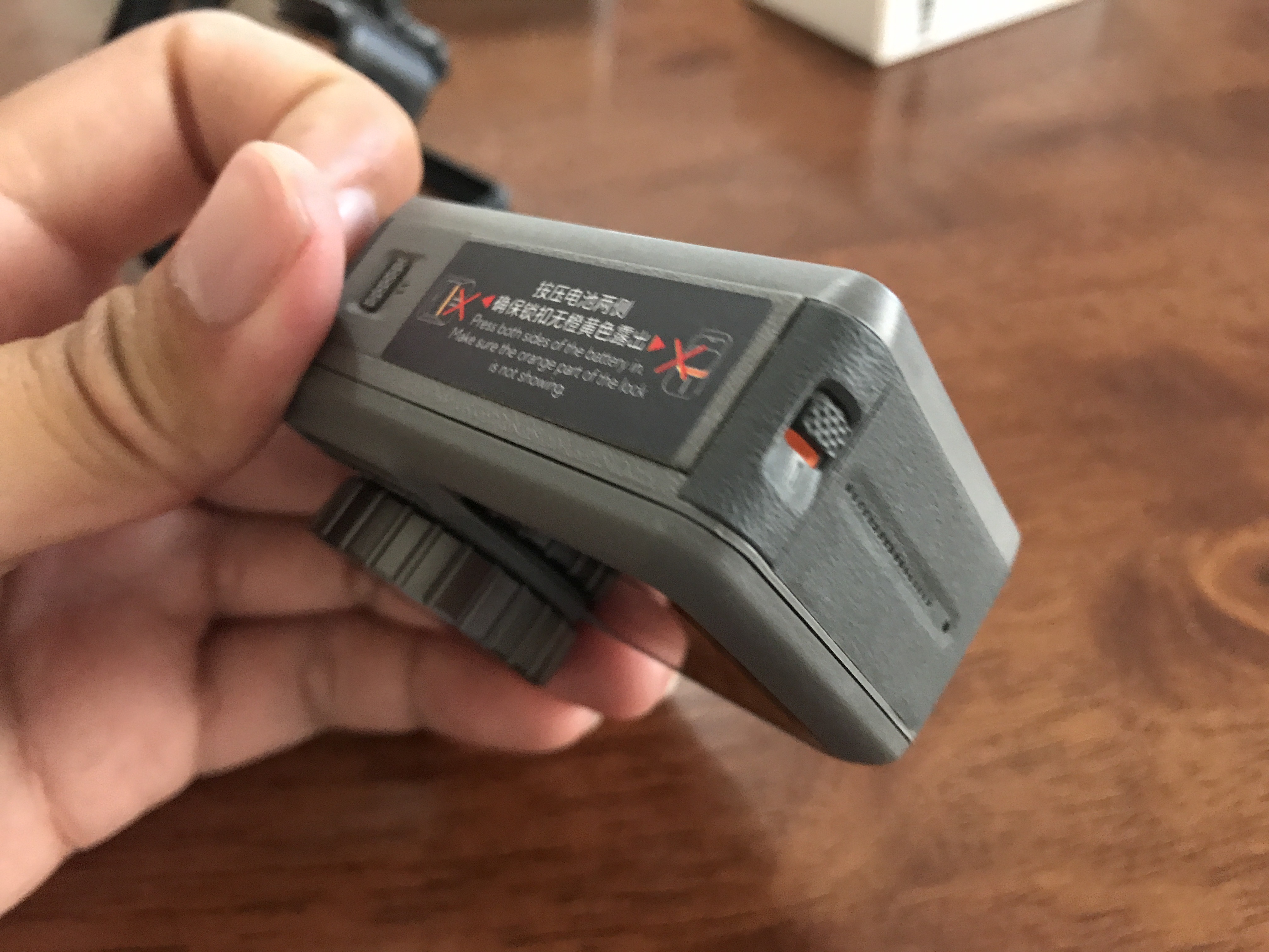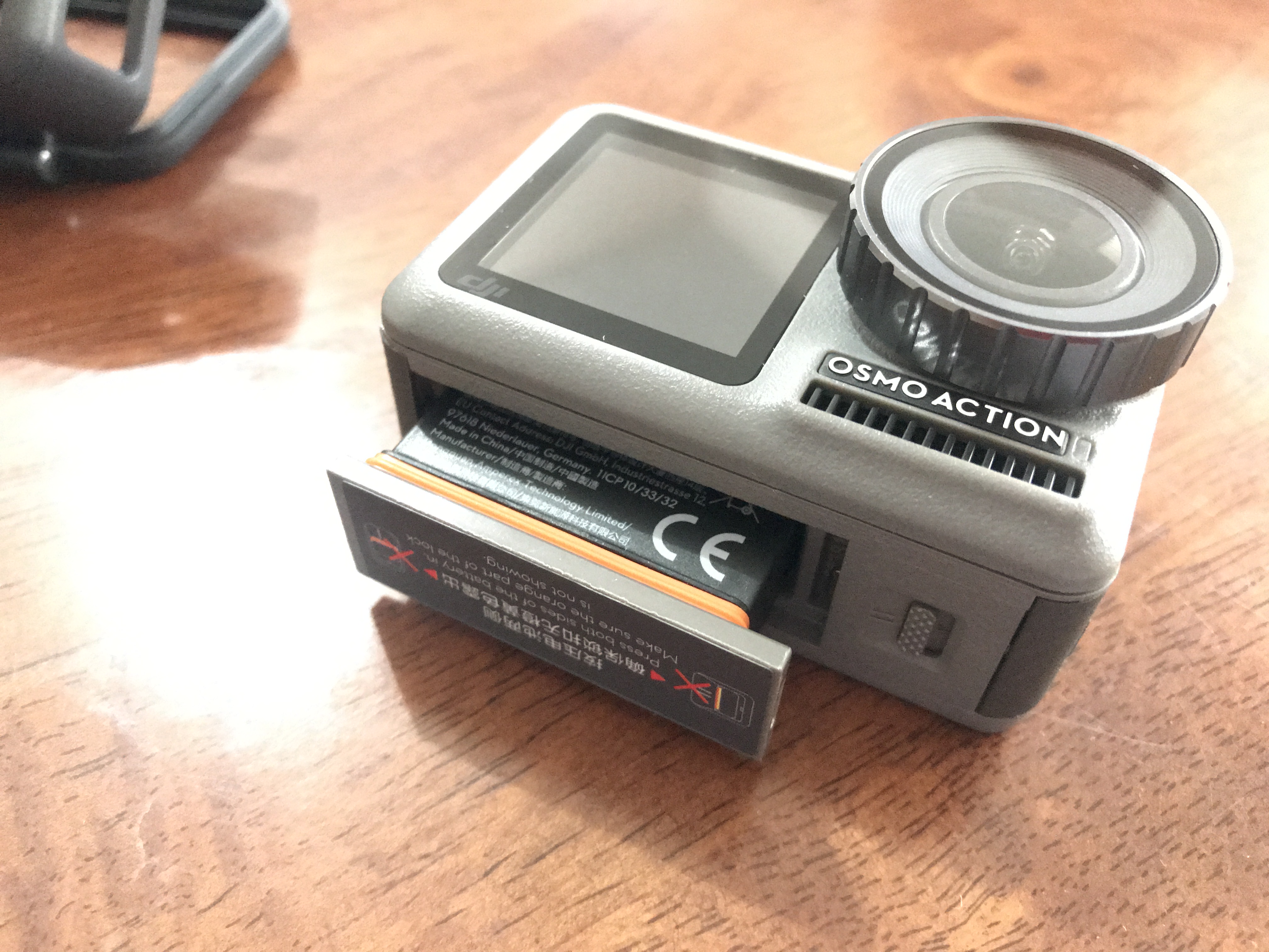 アクティベーションをする際にカメラの電源を入れる必要があるので、ケースの中にあるバッテリーをとりだし、Osmo Actionに装着しましょう。