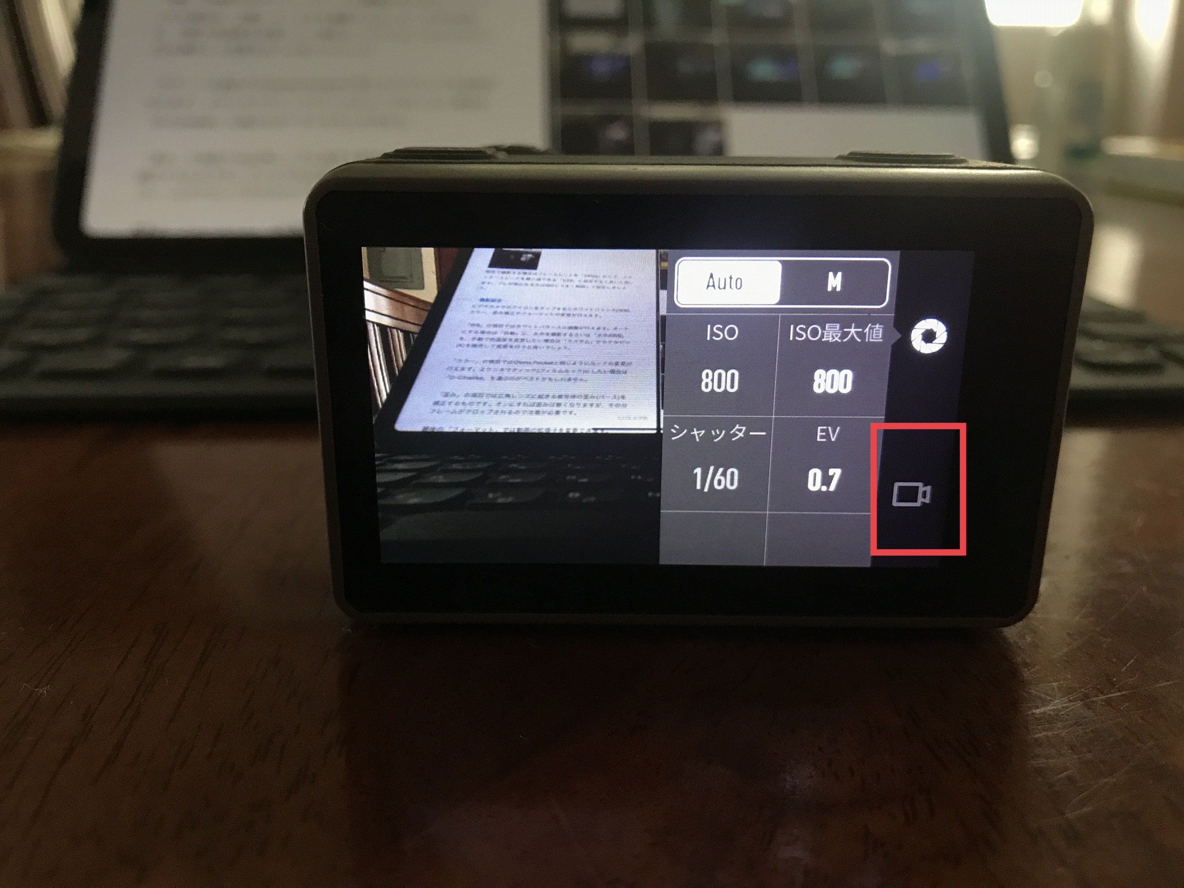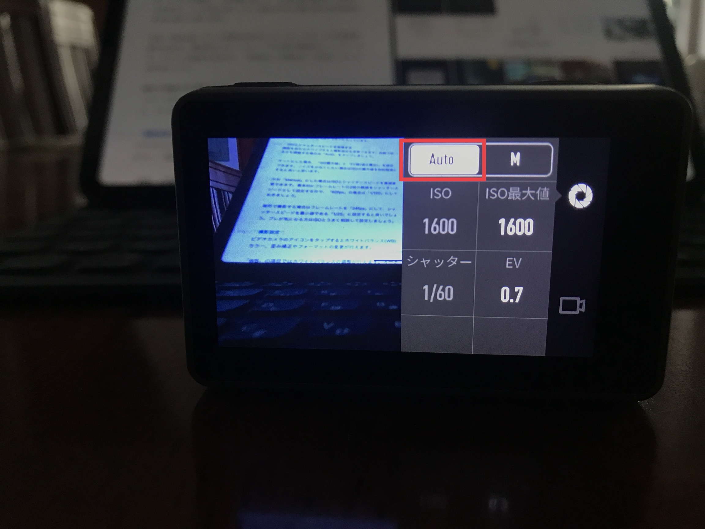 - 露出設定: Auto、ISO最大値: 1600、 EV:0.7