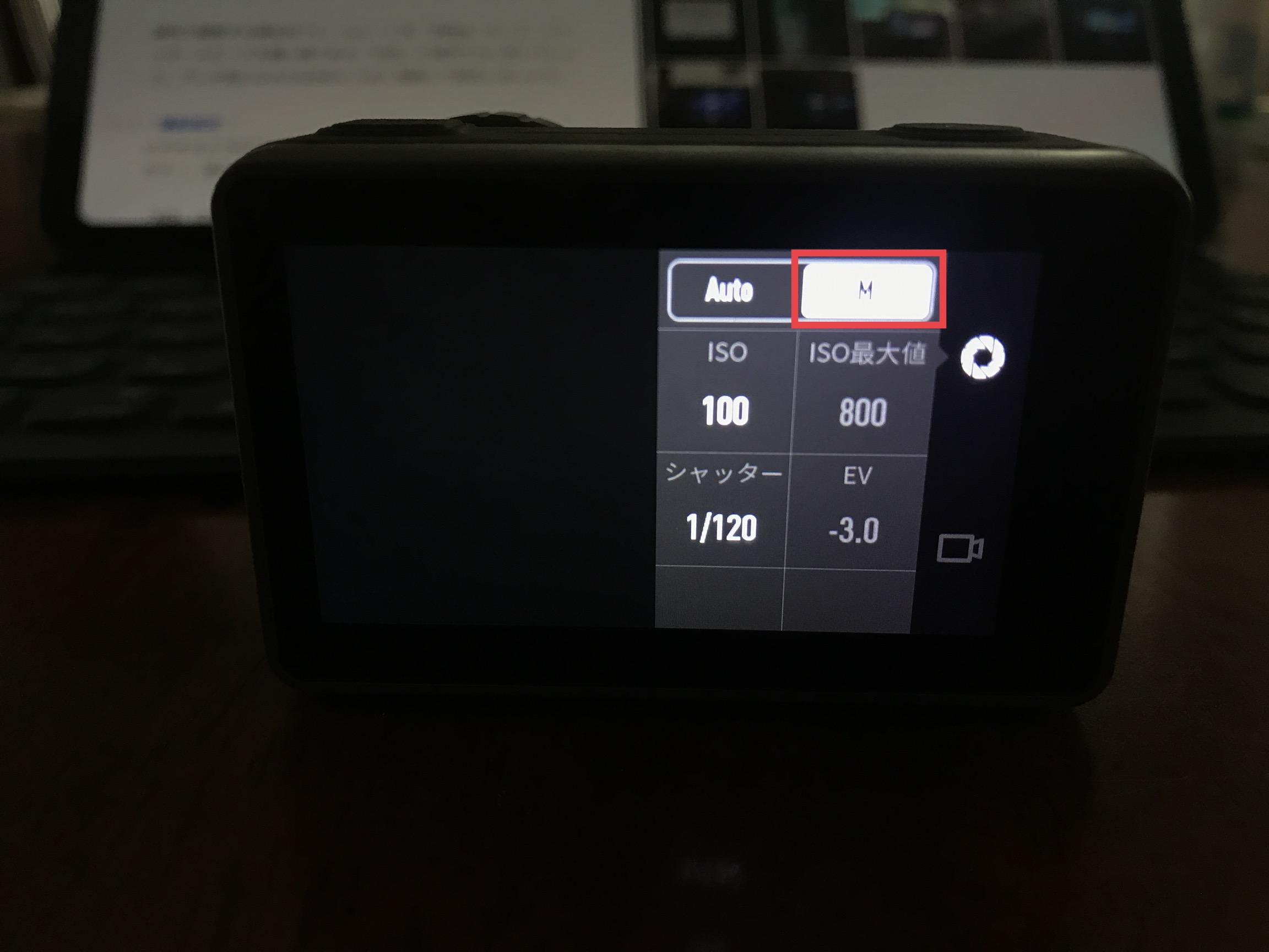 なお「Manual」にした場合は、ISOとシャッタースピードをマニュアルで変更できます。