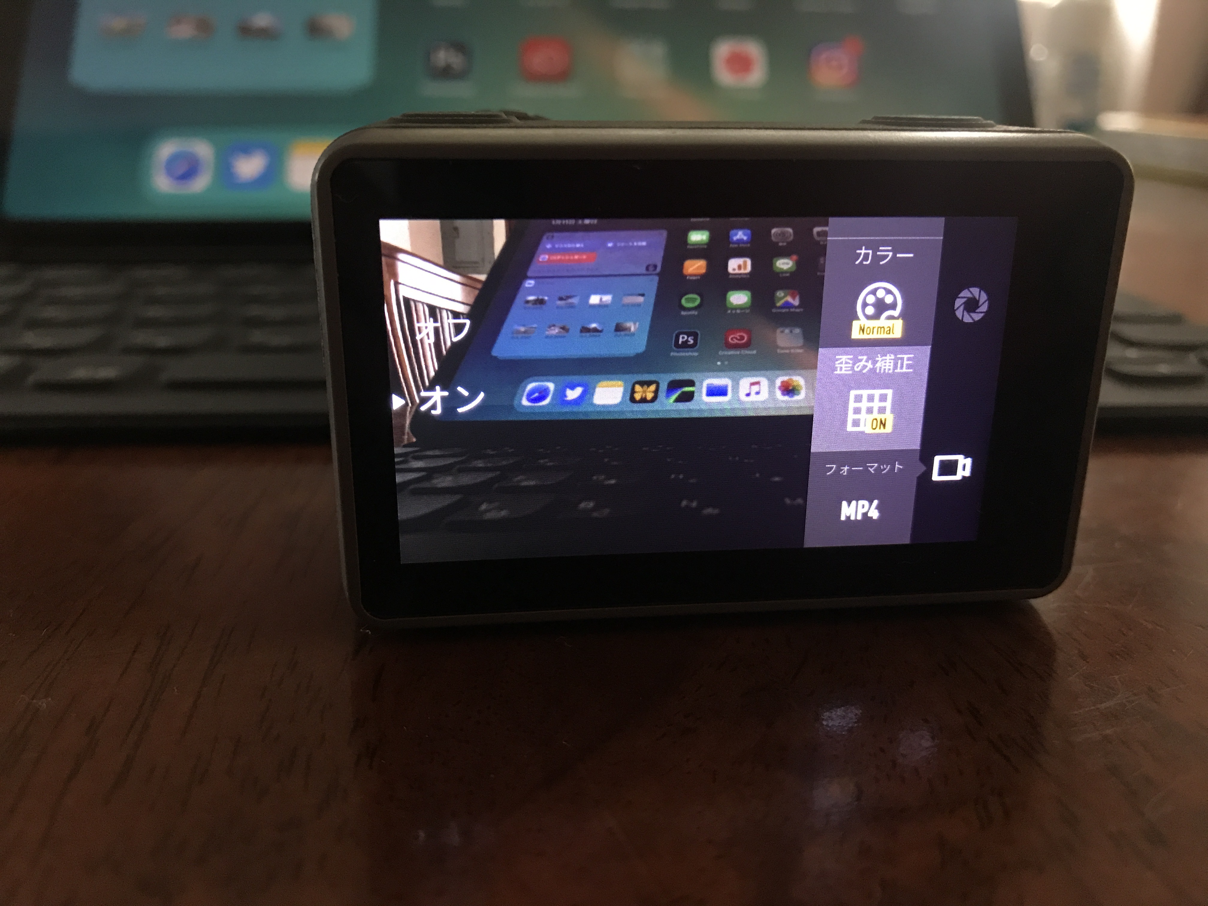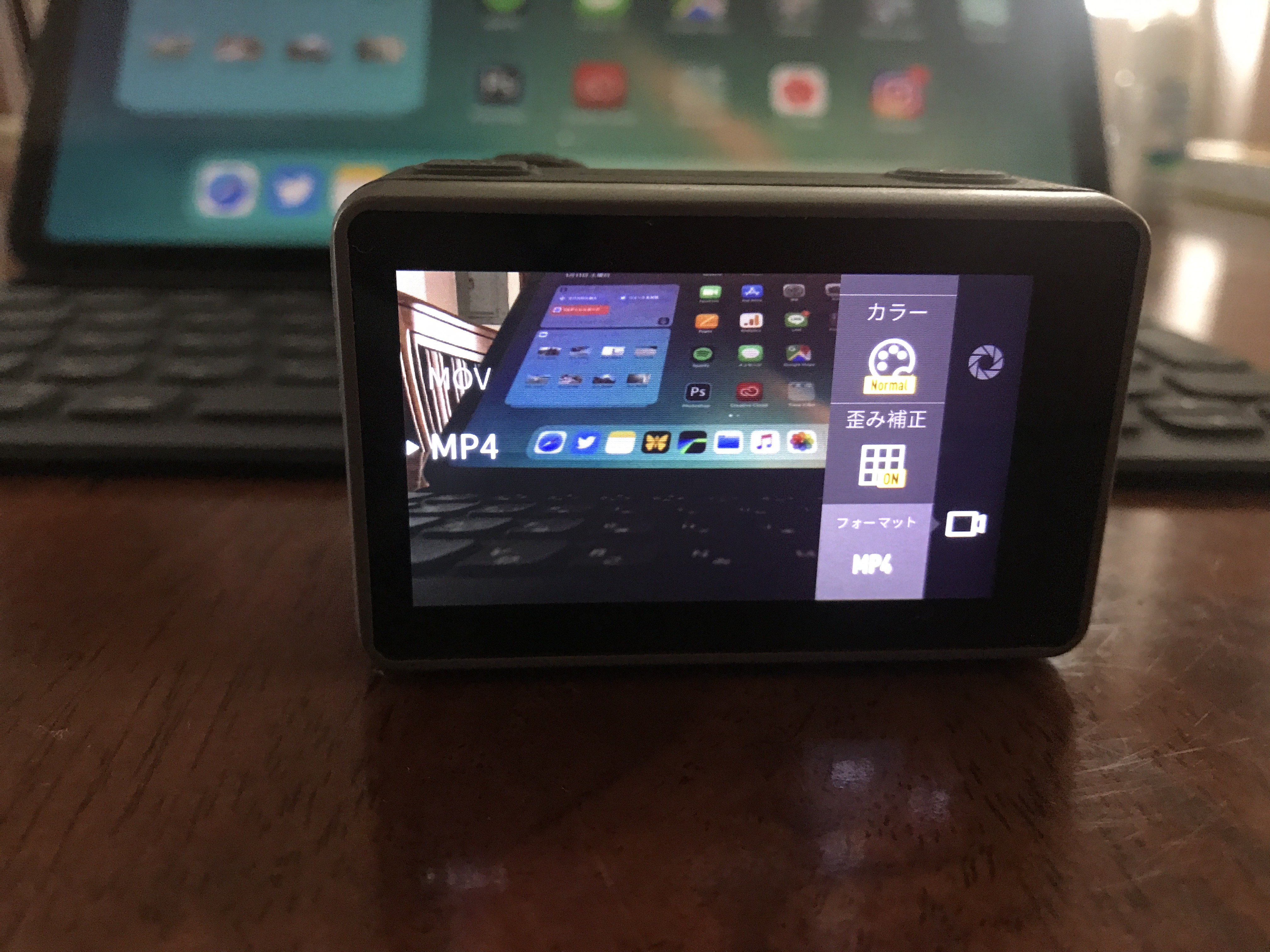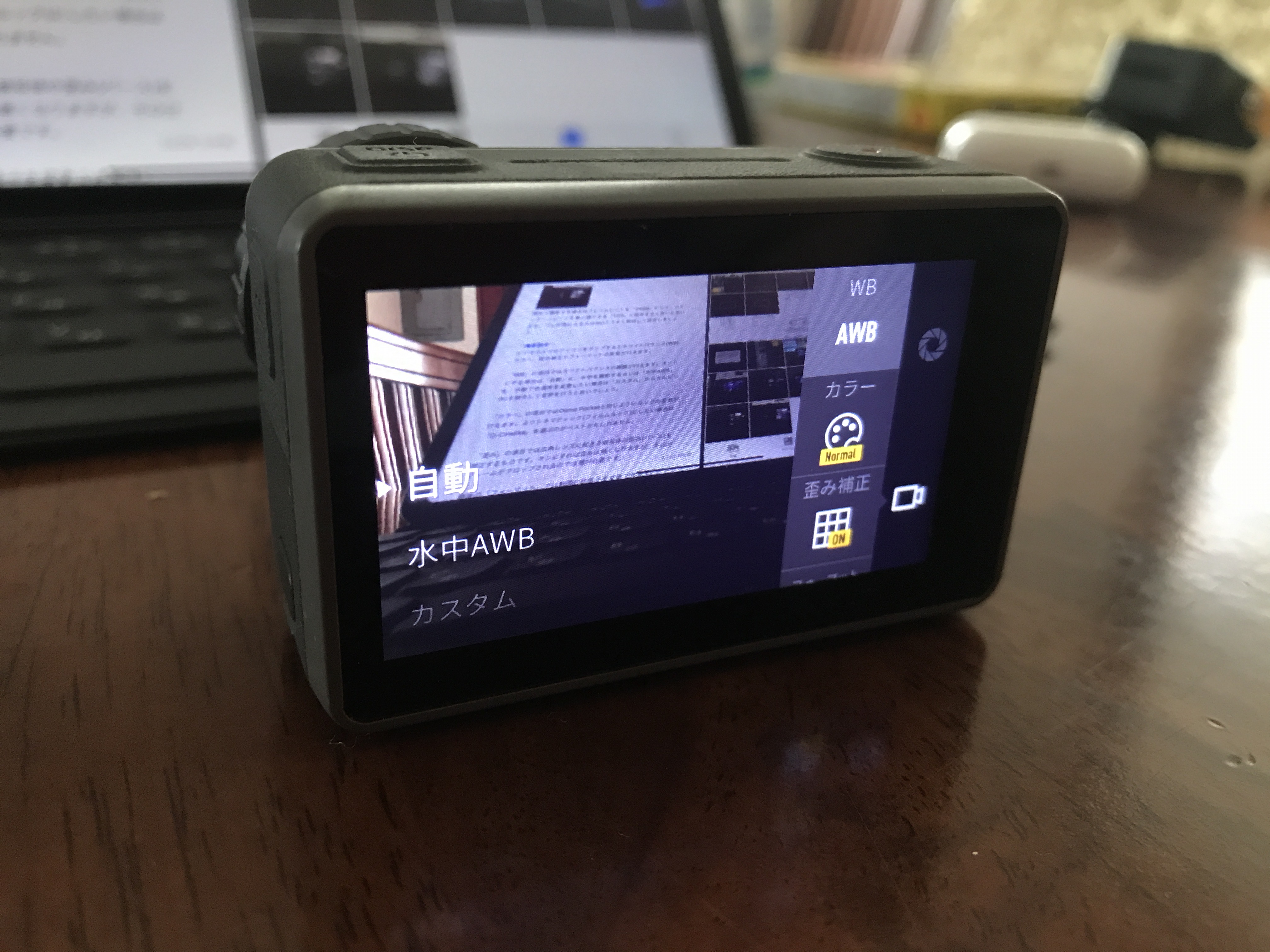 ビデオカメラのアイコンをタップするとホワイトバランス(WB)、カラー、歪み補正やフォーマットの変更が行えます。