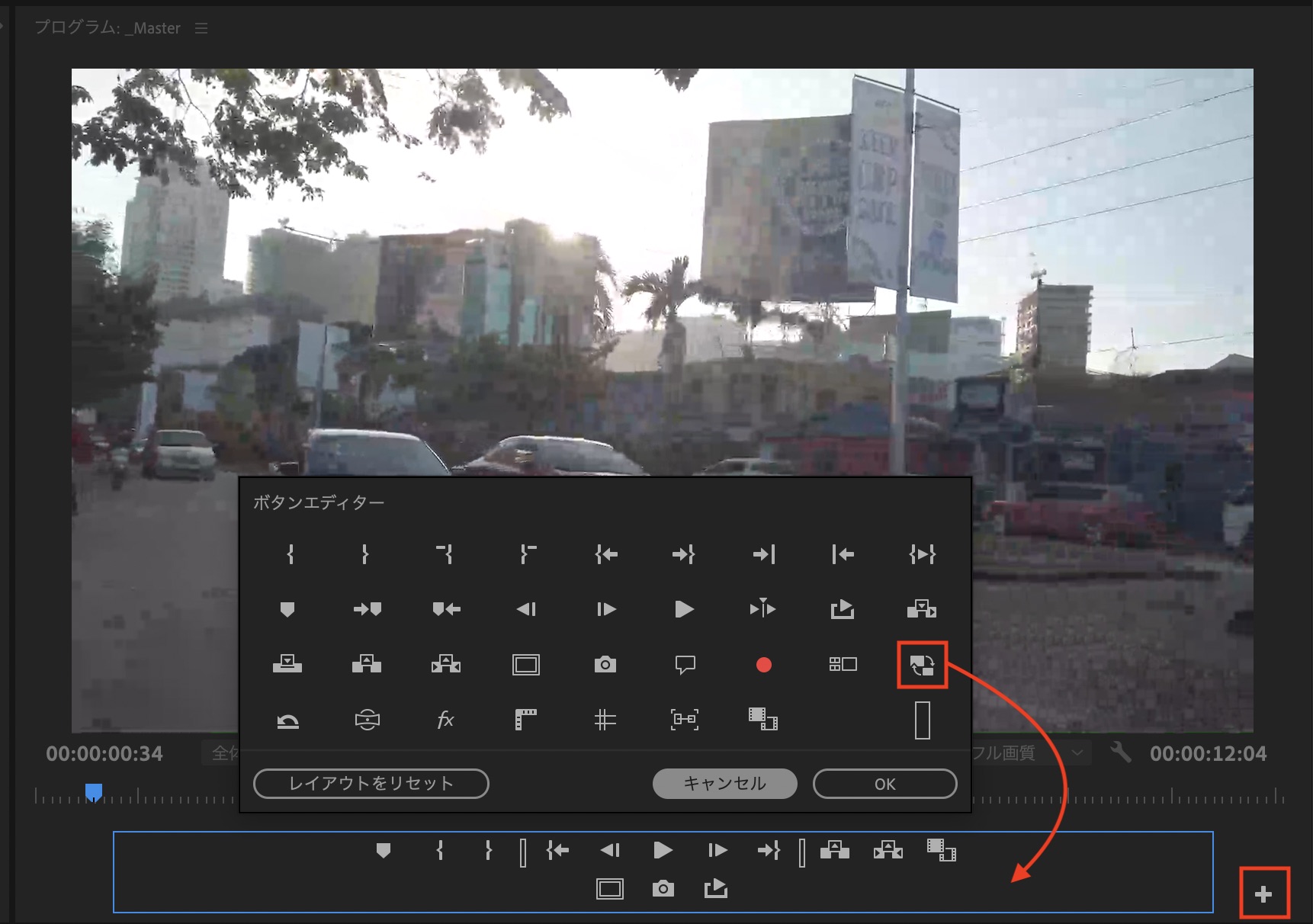 この切替アイコンがない場合は「+」アイコンのボタンエディターをクリックして、下のツールバーにドラッグ・アンド・ドロップしましょう。
