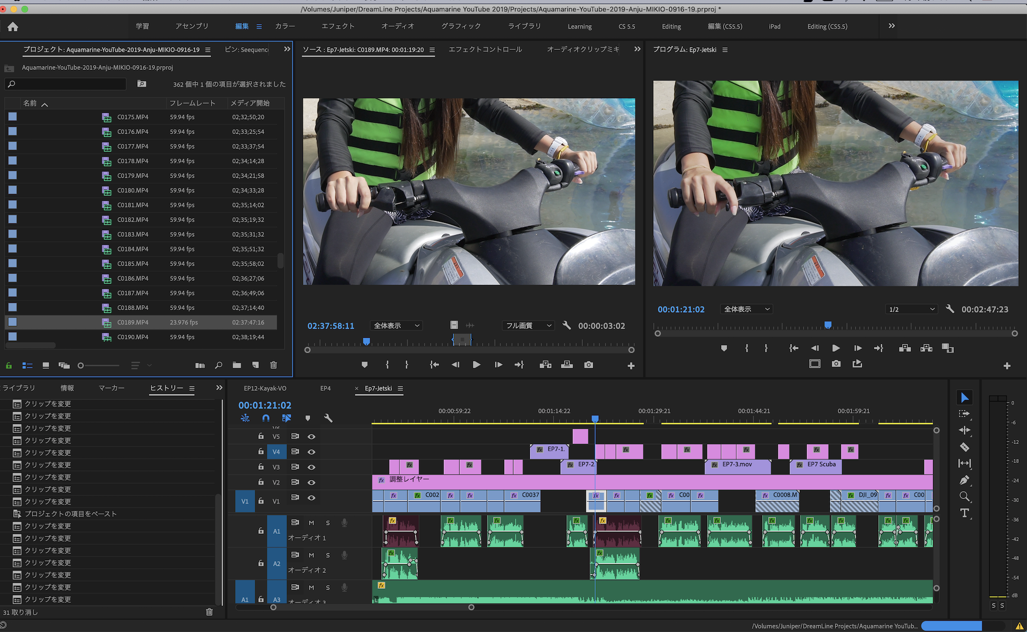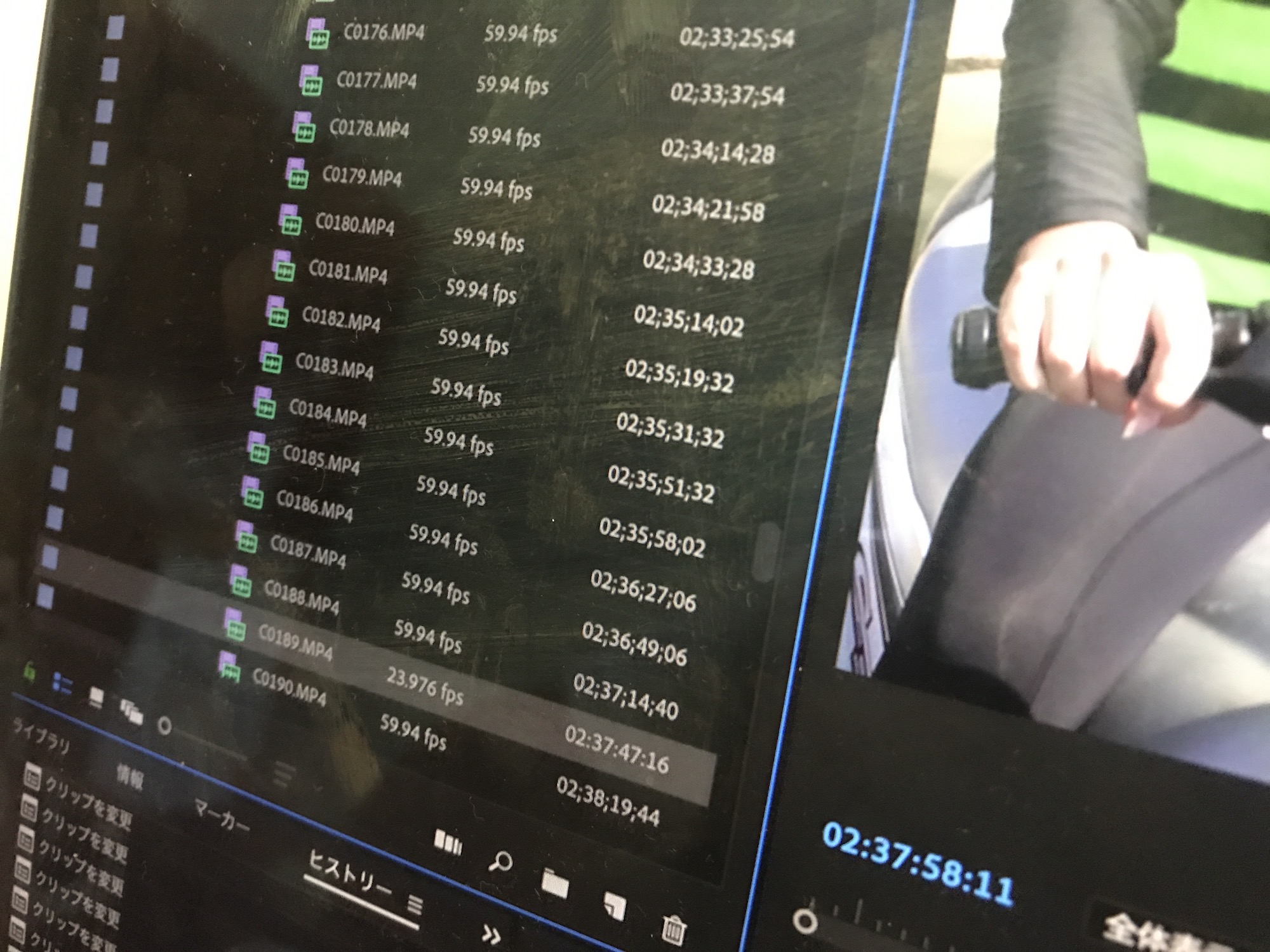 撮影時のフレームレートと編集時のフレームレートが違う場合は今回のようなトラブルになる可能性もあるので、対象となるクリップは「フッテージを変換」のツールを使って修正すると良いでしょう。