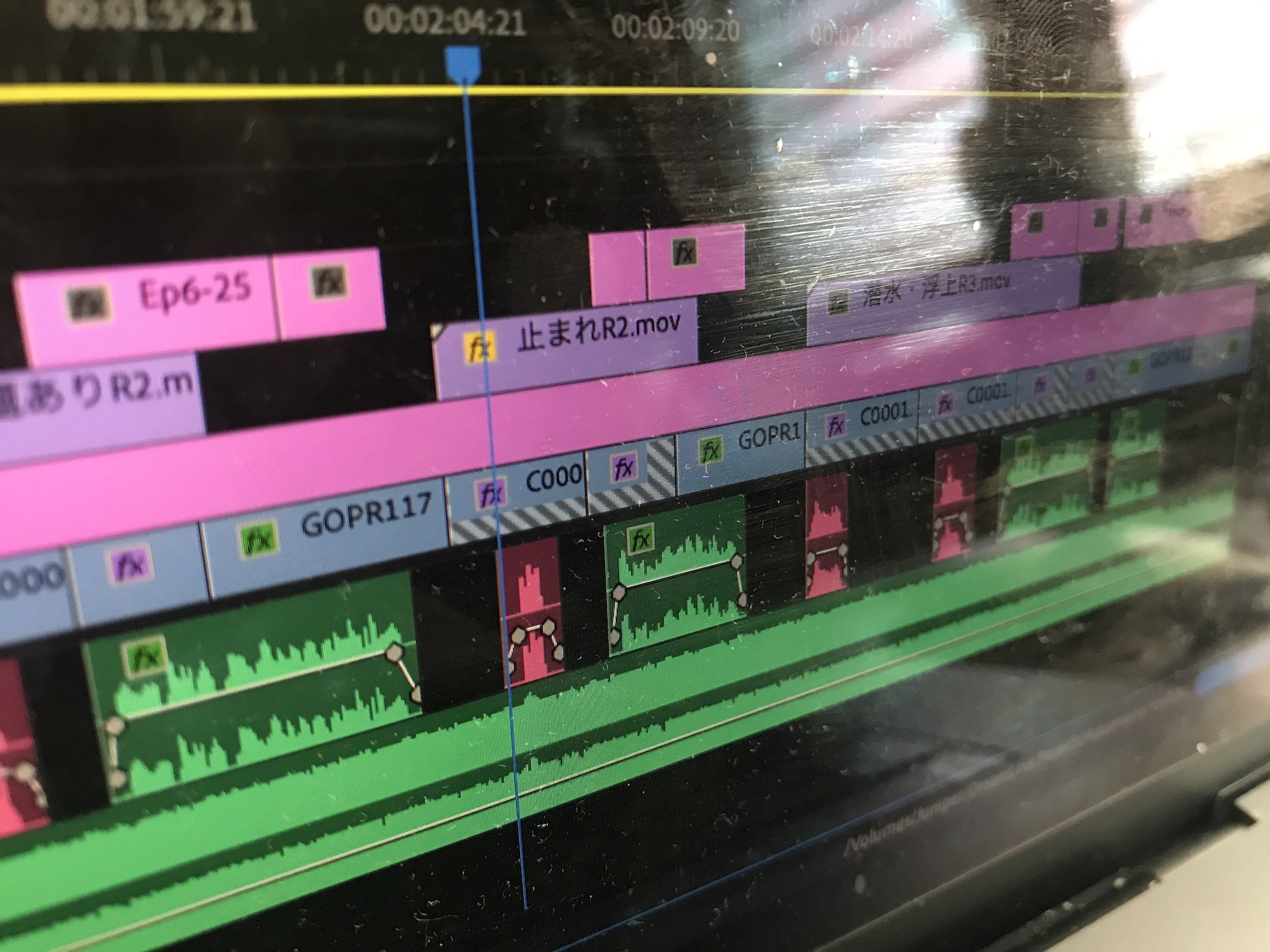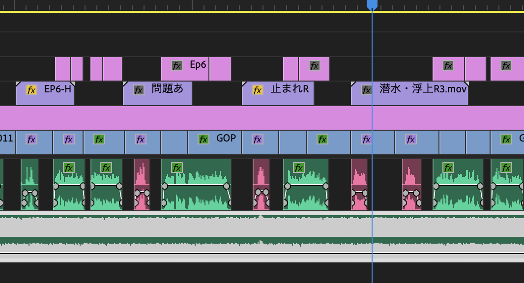 下のシーケンスを確認してみるとクリップの一部が斜線が入っています。
