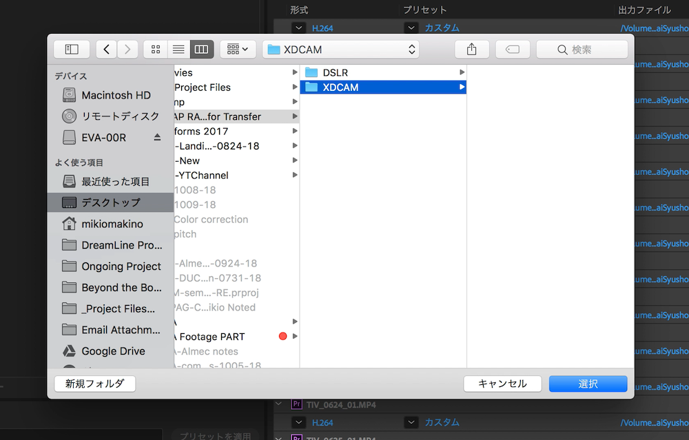 特にPremiere Proのプロジェクトウィンドウで各シーンに整理してある場合は、FinderやWindows Explorerといったファイルマネージャから探すより断然早いので、理想であればPremiere Proから特定の素材を見つけ出して、そのファイルだけを変換するのがベストですよね。