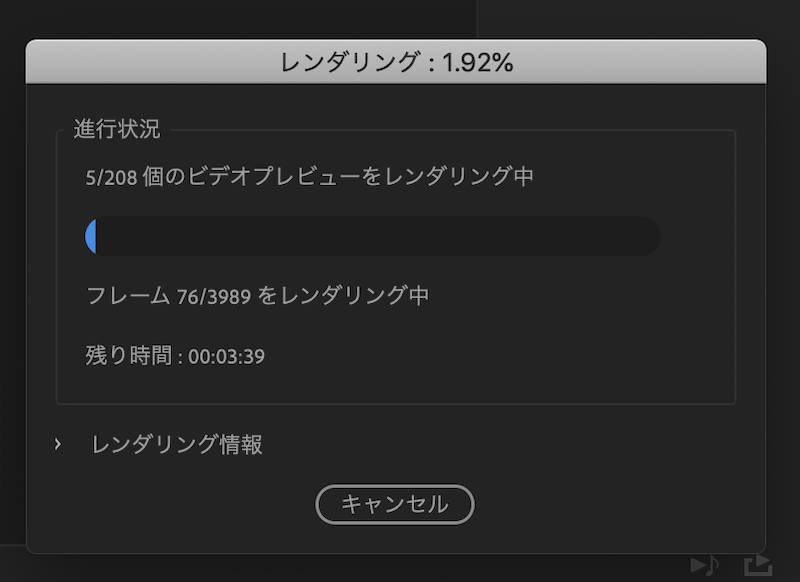 プロジェクトのデュレーションやエフェクトによっては時間がかかると思うので注意が必要です。