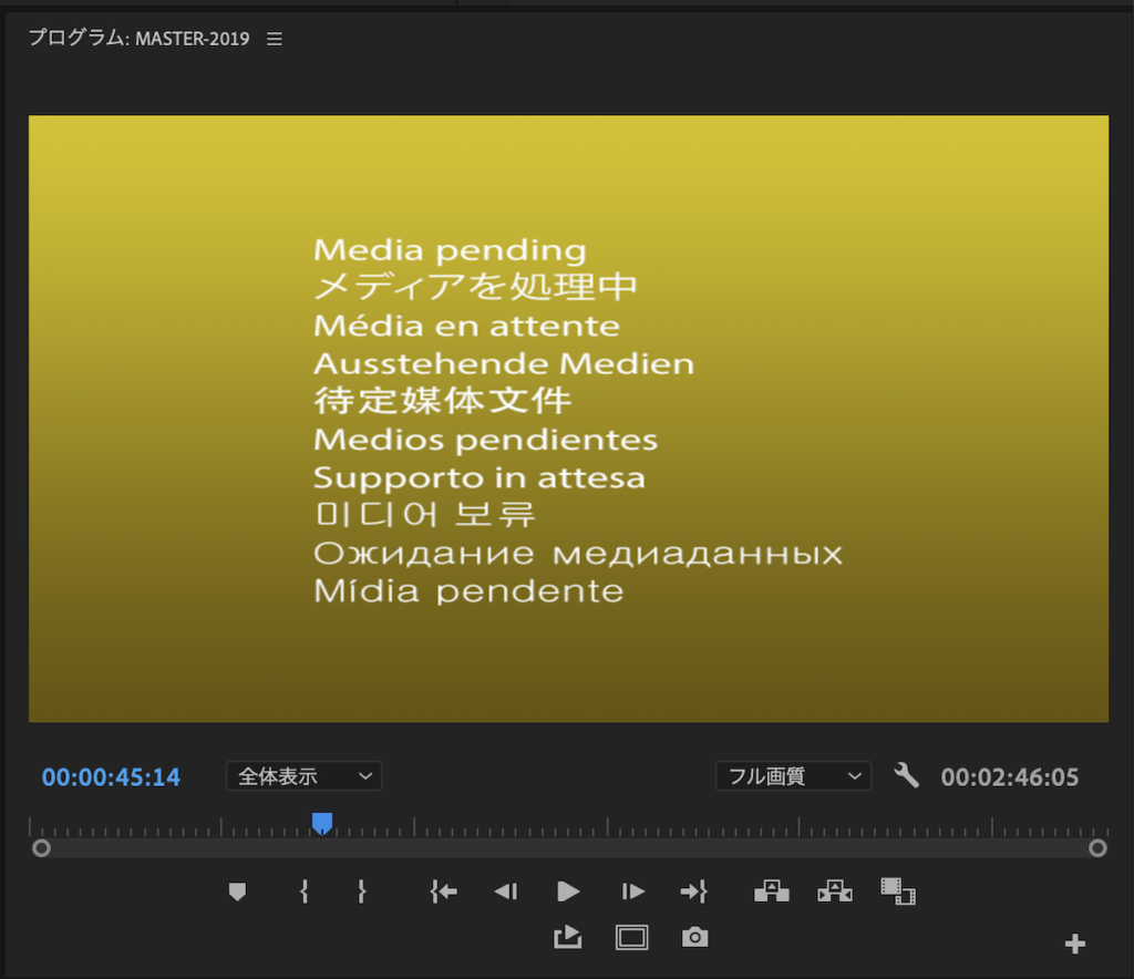 これらはクリップとクリップの間にトランジションを追加した時やビデオエフェクトを追加する時に現れる事が多いです。書き出しした映像では「メディア処理中」のフレームが表示されないものの、編集中に再生しながらチェックする事が出来ないので不便ですよね。