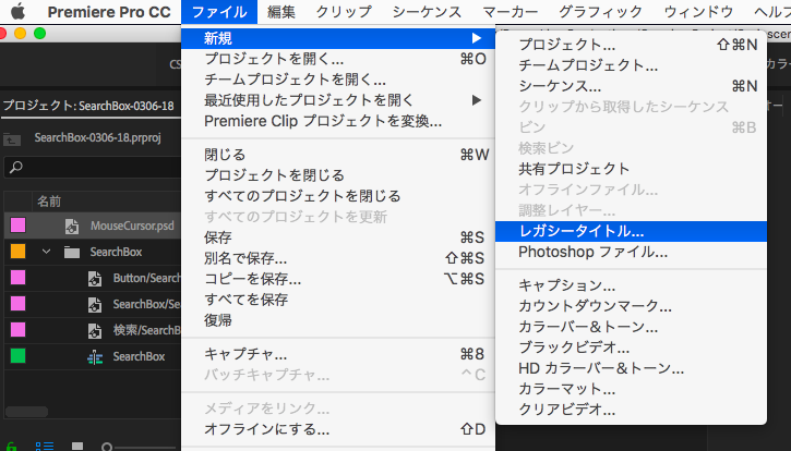 するとプロジェクトウィンドウに新しくビンとシーケンスが出来るので、今回の場合は「SearchBox」のシーケンスをダブルクリックして展開します。